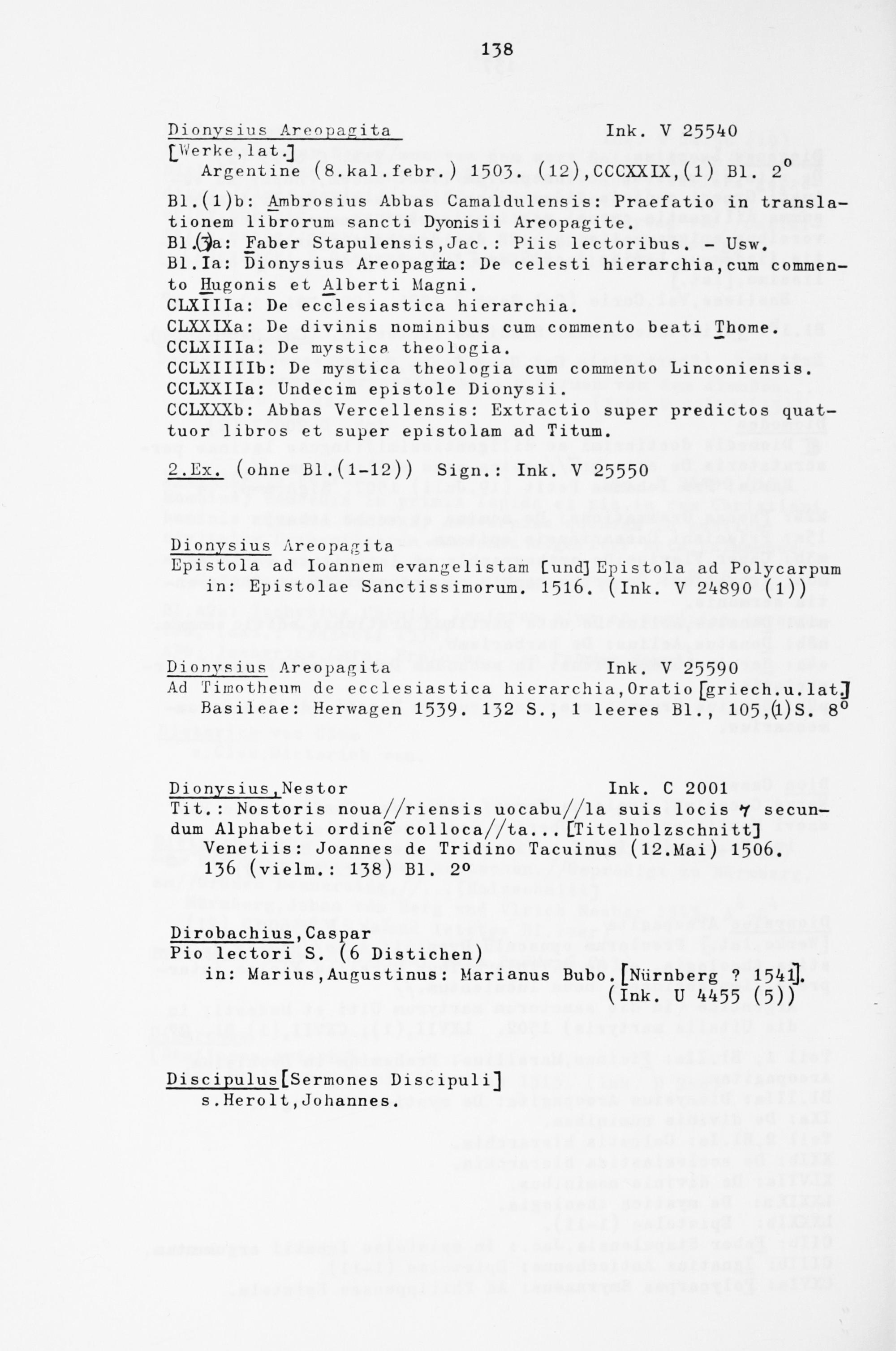 Ad Timotheum de ecc 1 esiastica hierarchia,Oratio[griech . u. 1 at J Basileae: Herwagen 1539. 132 S., 1 leeres Bl. , 105, (l)S. 8°