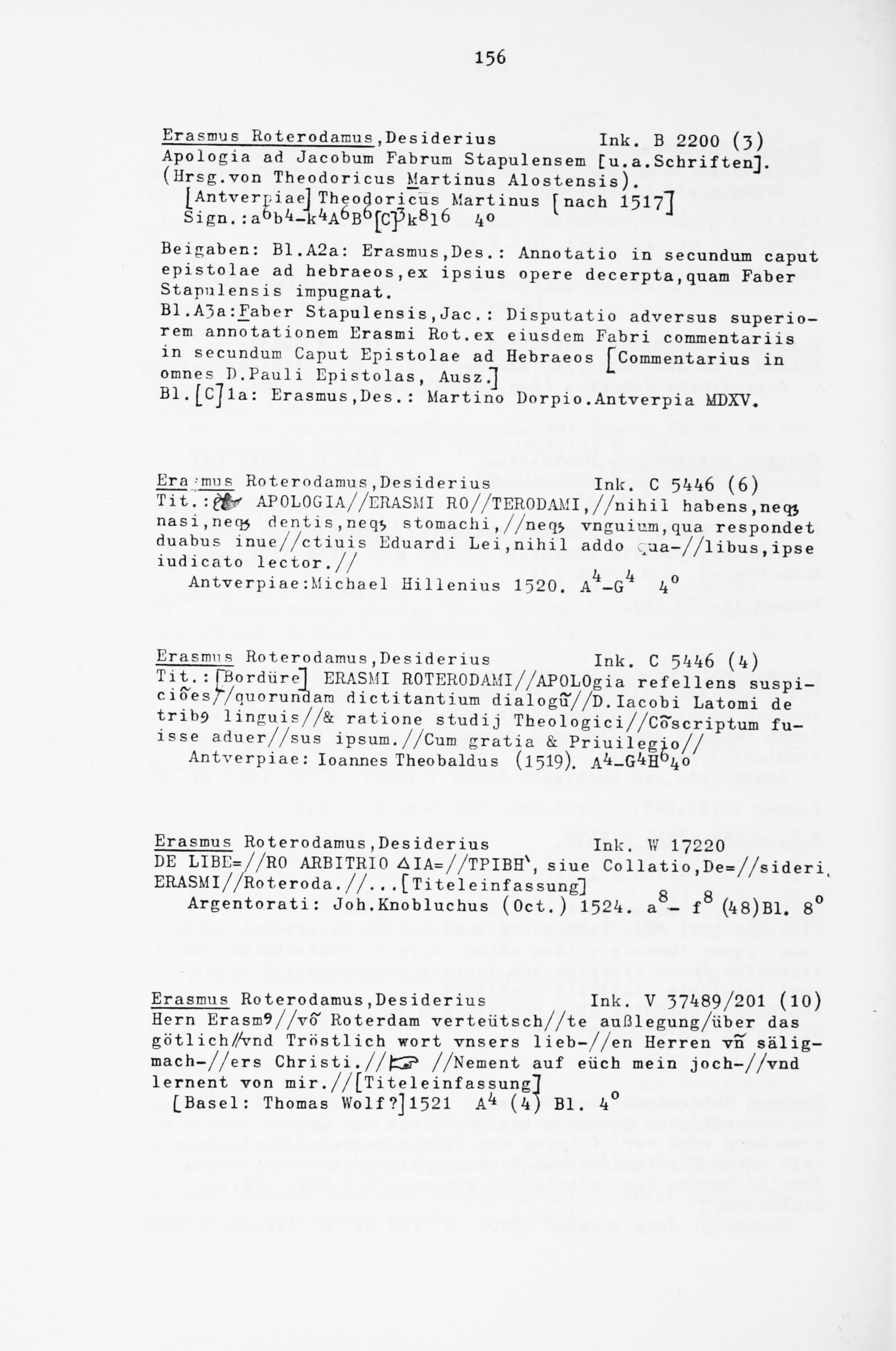 Beigaben: Bl.A2a: Erasmus,Des.: Annotatio in secundum caput epistolae ad hebraeos,ex ipsius opere decerpta,quam Faber Stapulensis impugnat.