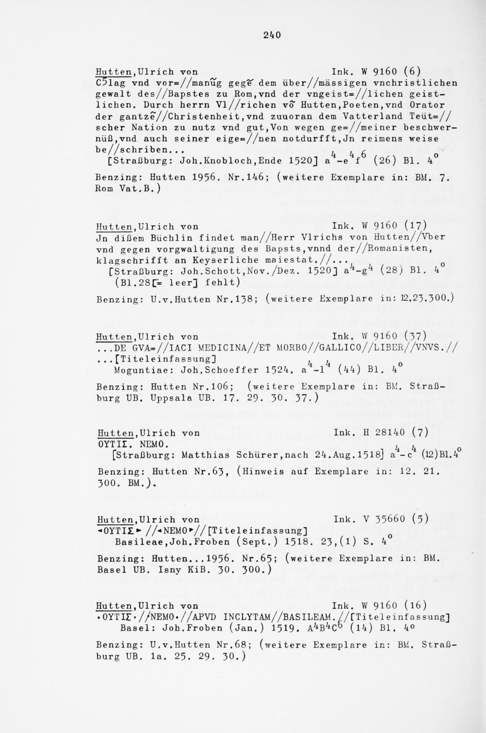 Benzing: Hutten 1956. Nr. 146; (weitere Exemplare in: BM. 7. Rom Vat.B.)