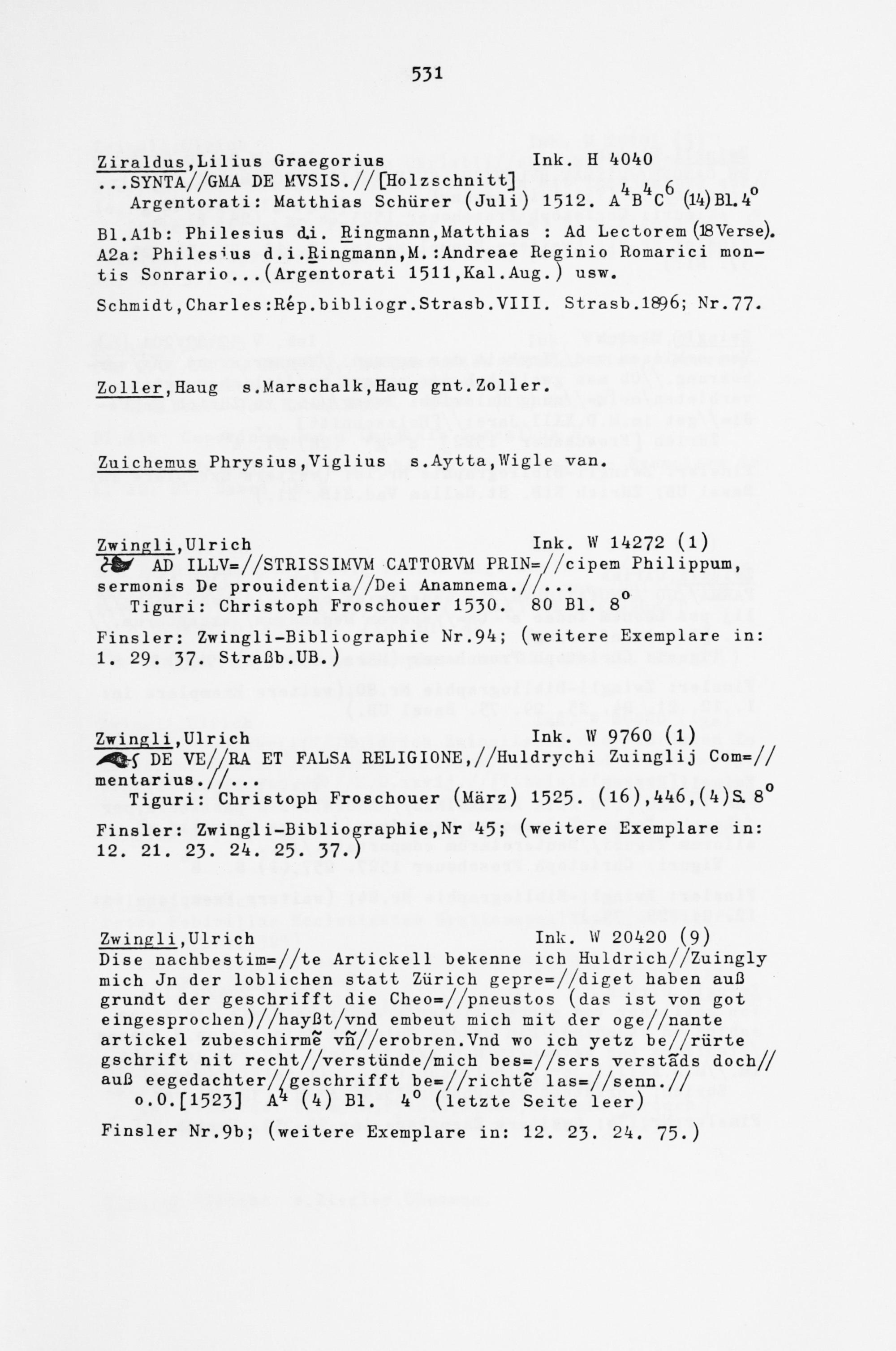Finsler: Zwingli-Bibliographie Nr. 94; (weitere Exemplare in: 1. 29. 37. Straßb.UB.)