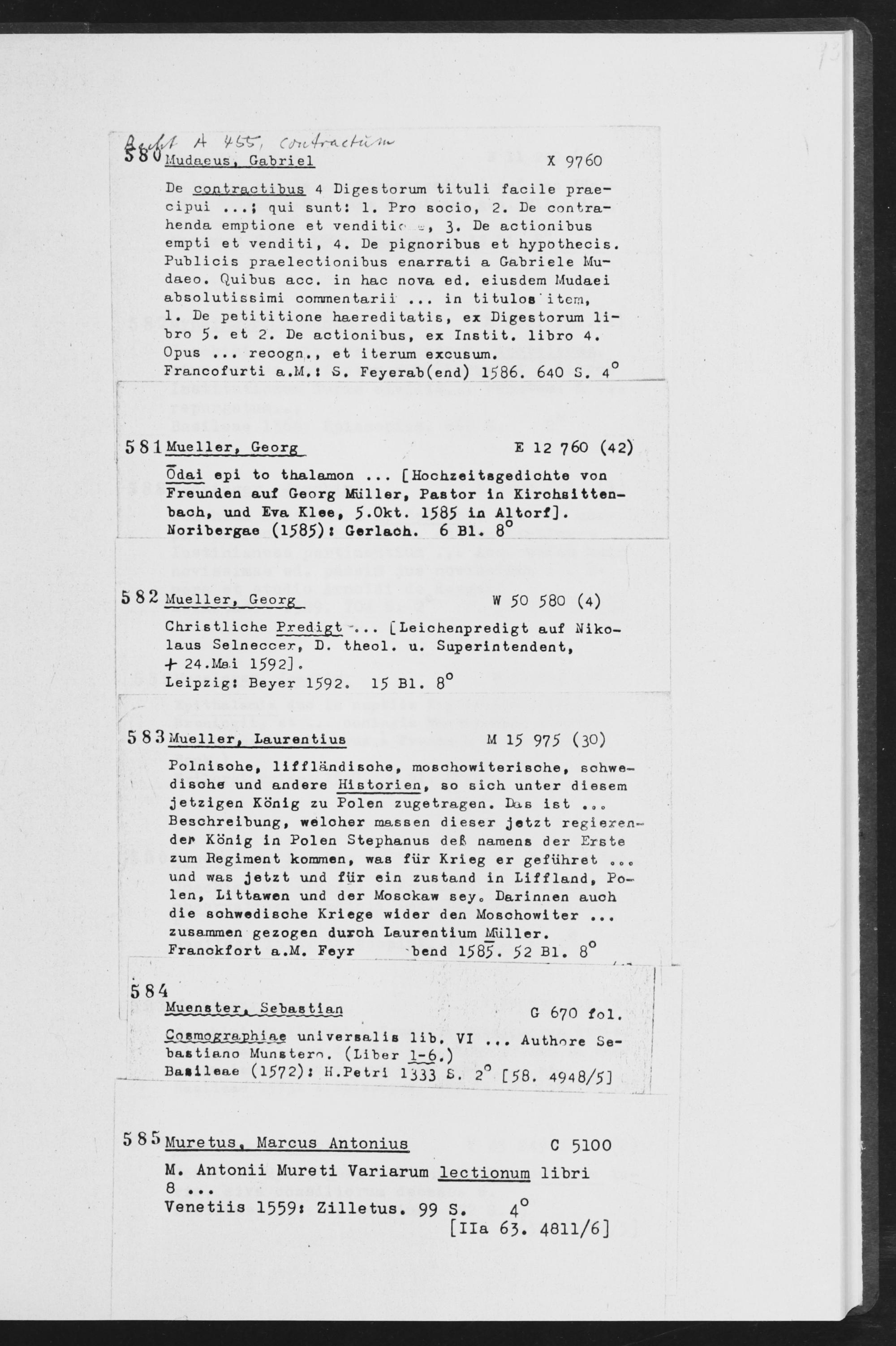 empti et venditi, 4. De pignoribus et hypothecis. Publicis prae 1 ec t ionibus enarrati a Gabriele Mu— daeo. Quibus acc. in hac nova ed. eiusdem Mudaei absolutissimi commentarii ... in tituloB 'i tcm, 1. De petititione haereditatis, ex Digestorum li- bro 5« et 2. De actionibus, ex Instit. libro 4. Opus ... recogn., et iterum excusum. Francofurti a .M .J S. Feyerab(end) 1586. 64O S. 4°