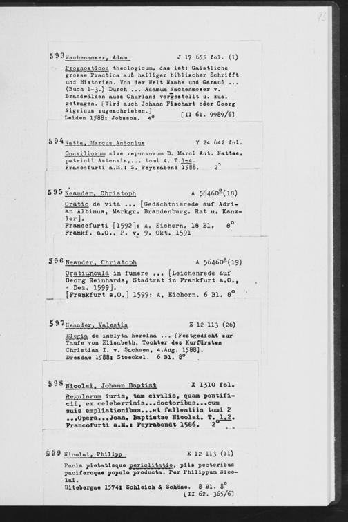 Francofurti [l592 ]i A. Eichorn. 18 Bl. 8° Prankf. a.O.. P. v. 9. Okt. 1591