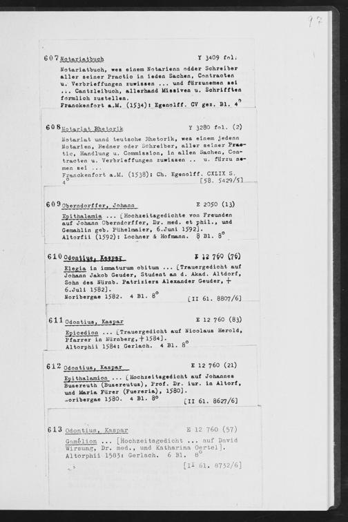 Ep i thalamion ..♦ [Hochzeitsgedicht auf Johannes Busereuth (Busereutus), Prof. Dr. iur. in Altorf, und Maria Fürer (Fuereria), 1580]. ..oribergae 1530. 4 Bl. 8° ßl> q 6 z? / 6 j