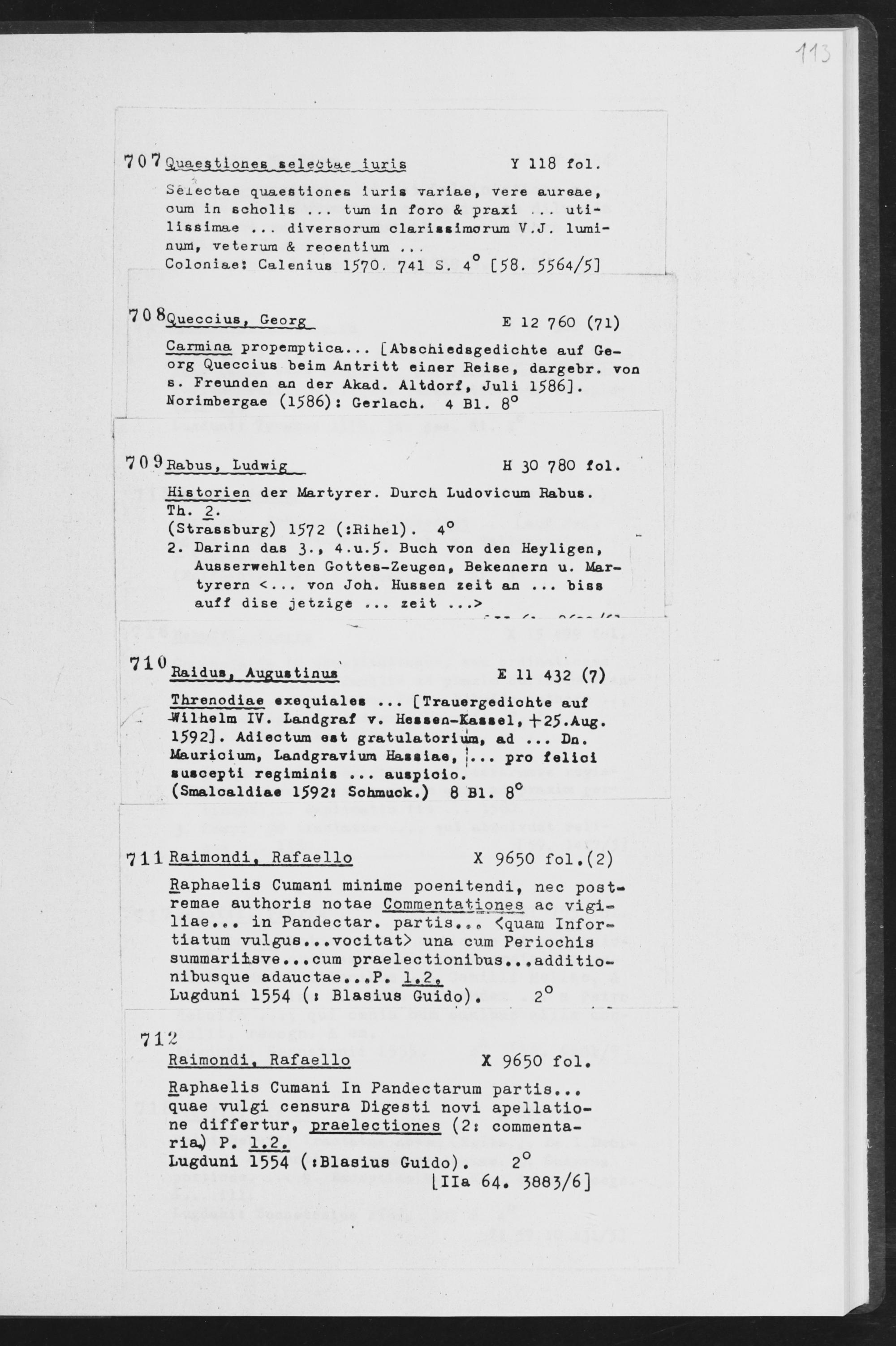 Carmina properaptica... [Abschiedsgedichte auf Georg Queccius beim Antritt einer Heise, dargebr. von b . Freunden an der Akad. Altdorf, Juli 1586J. Norimbergae (1586) : Gerlach. 4 Bl. 8°