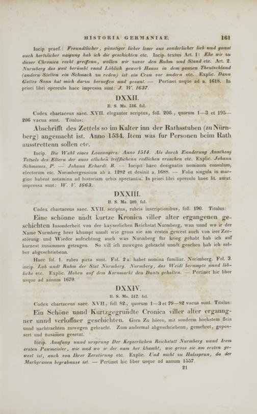 XI. Historia Germaniae. Cod. CCLXXXII - DLXXIII S. 90-176