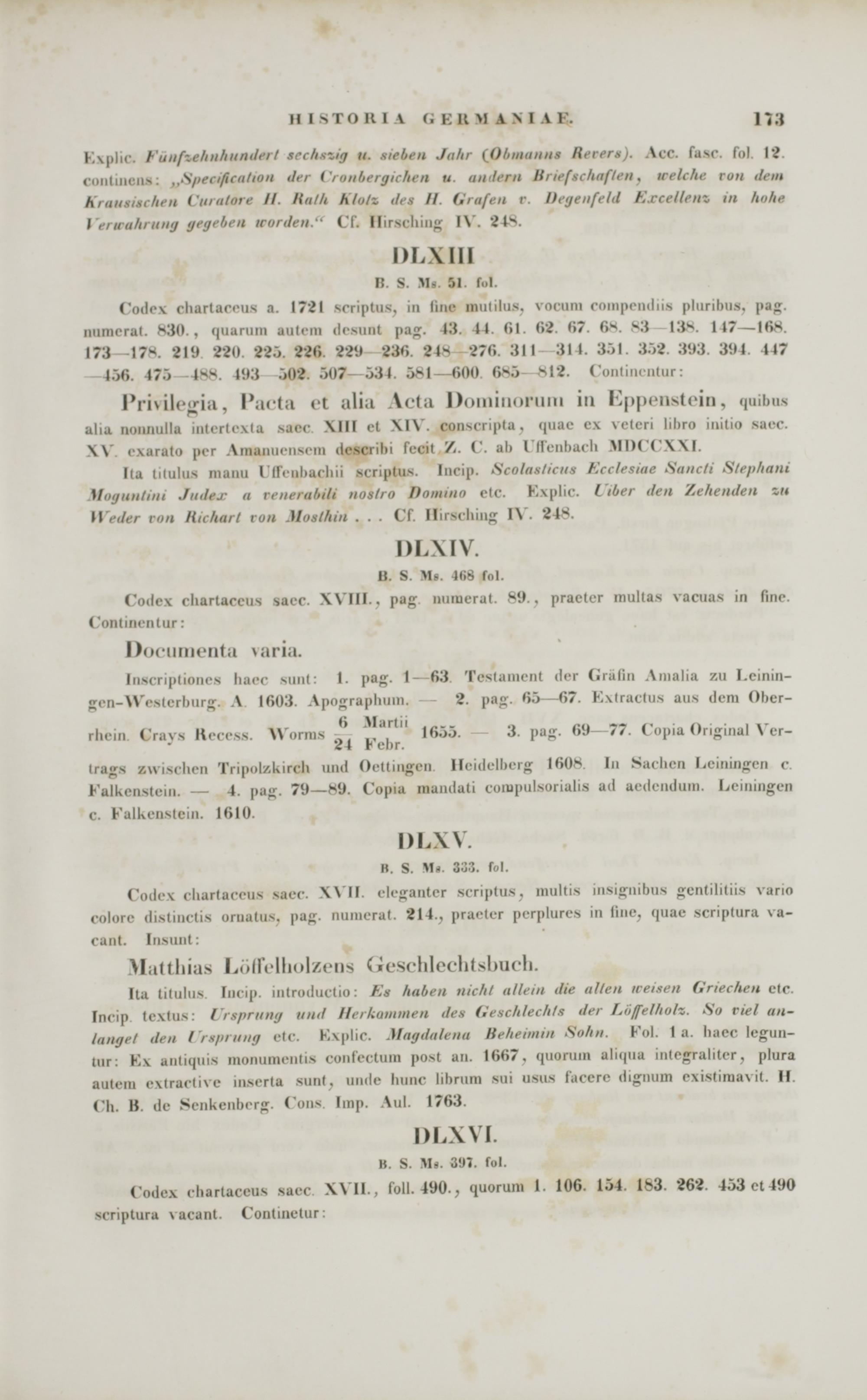 XI. Historia Germaniae. Cod. CCLXXXII - DLXXIII S. 90-176