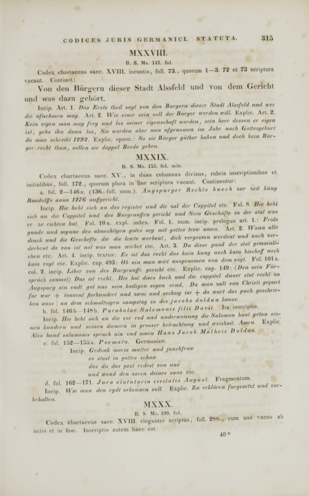 XXIV. Codices Juris Germanici. Statuta. Cod. CMLIII - MLXXX S. 280-333