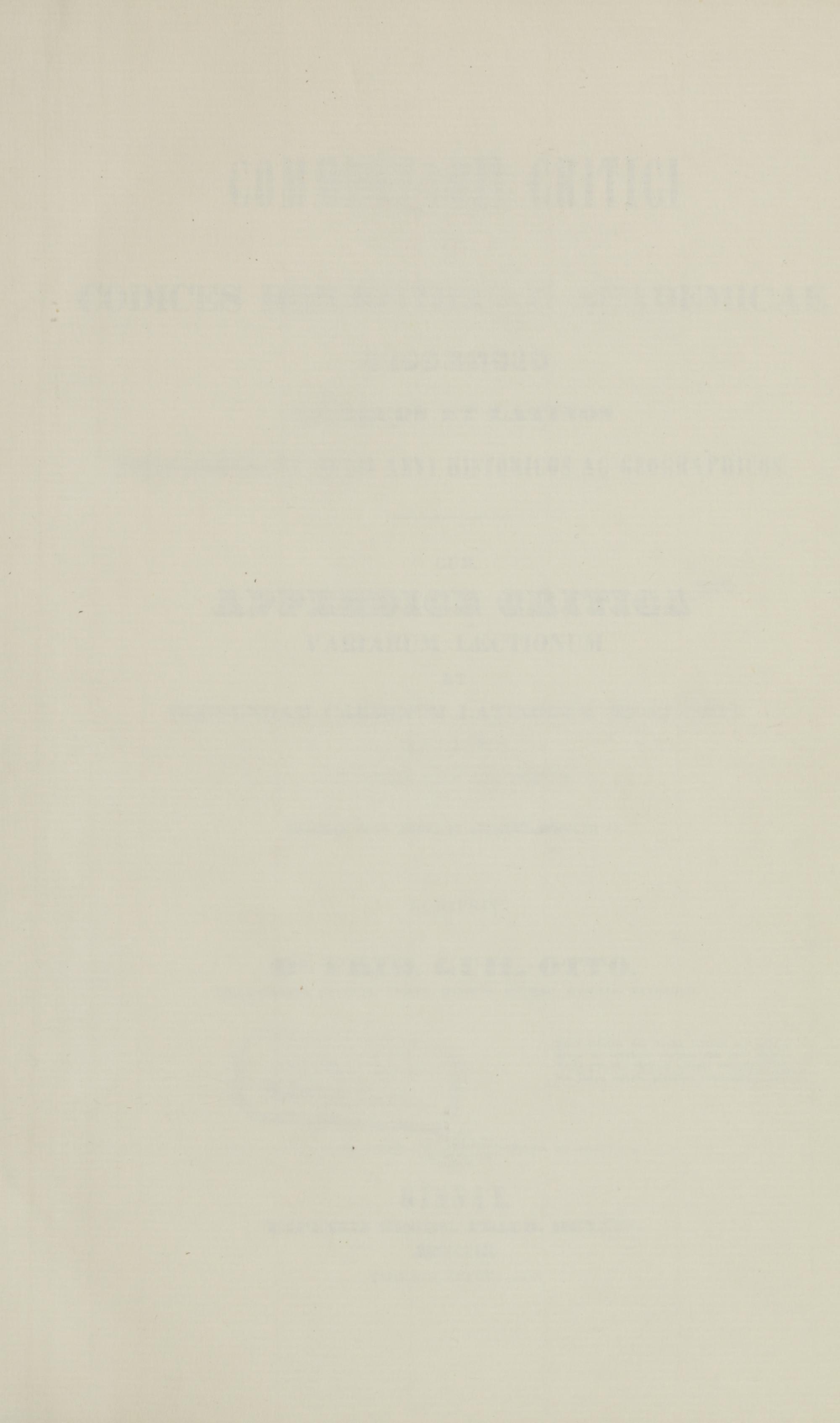 Commentarii critici in codices Bibliothecae academicae Gissensis Graecos et Latinos philologicos et medii aevi historicos ac geographicos : cum appendice critica variarum lectionum et quorundam carminum Latinorum medii aevi nunc primum e codicibus editorum / scripsit Frid. Guil. Otto