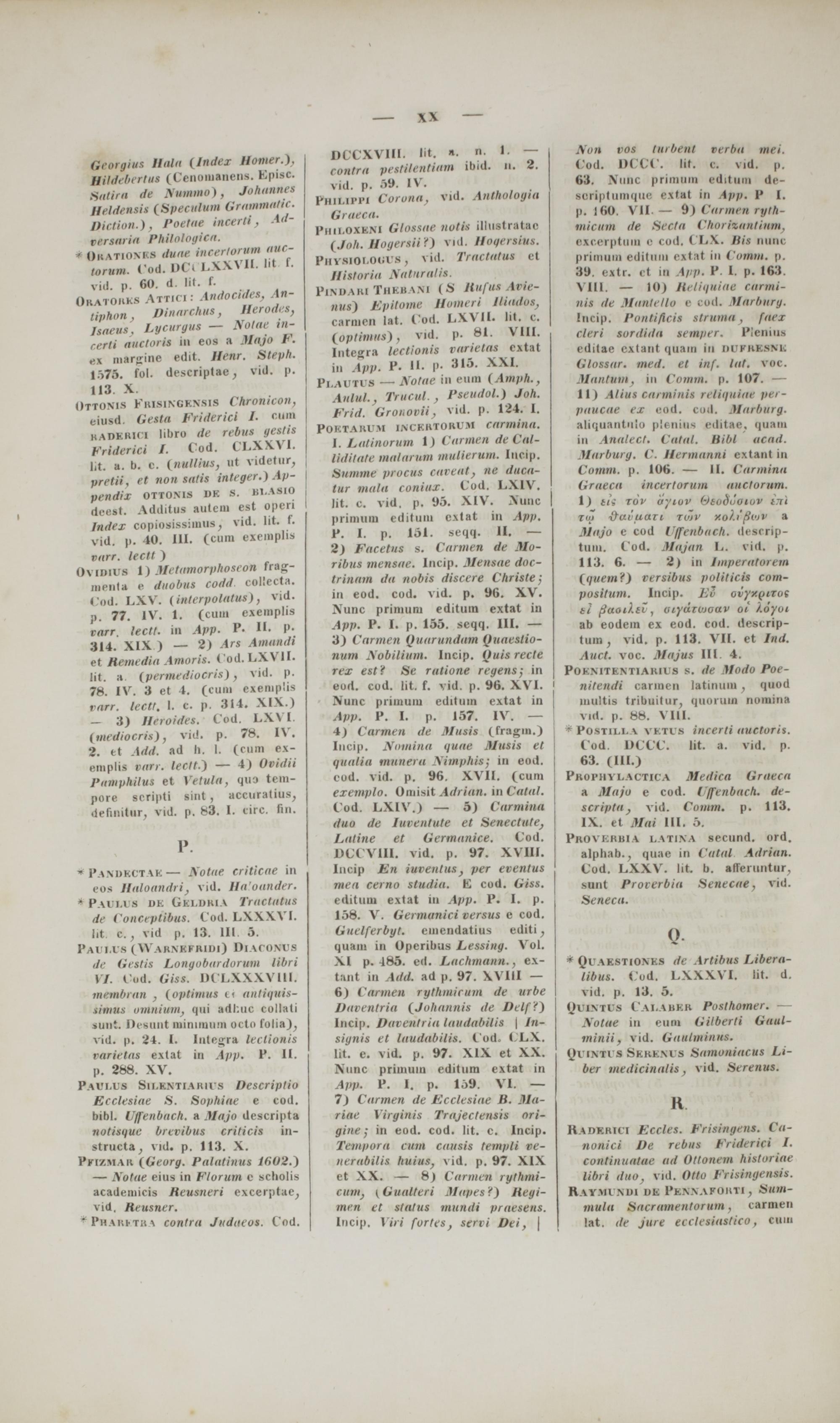 Commentarii critici in codices Bibliothecae academicae Gissensis Graecos et Latinos philologicos et medii aevi historicos ac geographicos : cum appendice critica variarum lectionum et quorundam carminum Latinorum medii aevi nunc primum e codicibus editorum / scripsit Frid. Guil. Otto