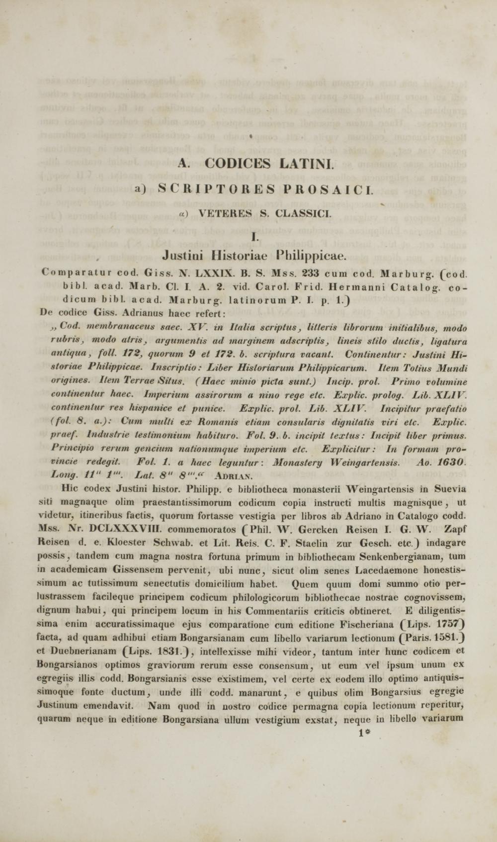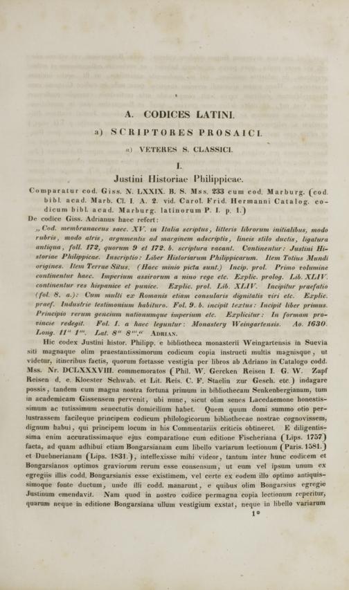 Commentarii critici in codices Bibliothecae academicae Gissensis Graecos et Latinos philologicos et medii aevi historicos ac geographicos : cum appendice critica variarum lectionum et quorundam carminum Latinorum medii aevi nunc primum e codicibus editorum / scripsit Frid. Guil. Otto