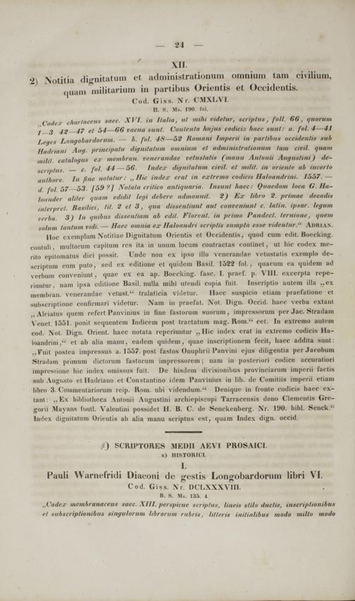 Commentarii critici in codices Bibliothecae academicae Gissensis Graecos et Latinos philologicos et medii aevi historicos ac geographicos : cum appendice critica variarum lectionum et quorundam carminum Latinorum medii aevi nunc primum e codicibus editorum / scripsit Frid. Guil. Otto