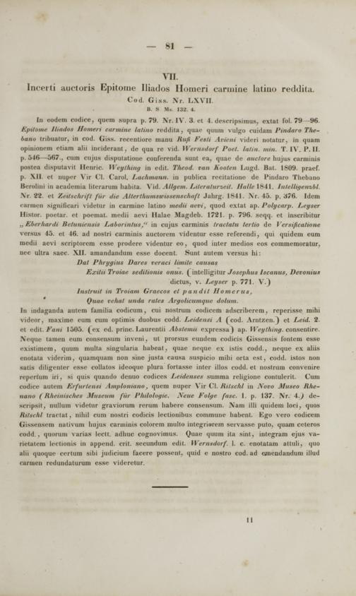 Commentarii critici in codices Bibliothecae academicae Gissensis Graecos et Latinos philologicos et medii aevi historicos ac geographicos : cum appendice critica variarum lectionum et quorundam carminum Latinorum medii aevi nunc primum e codicibus editorum / scripsit Frid. Guil. Otto