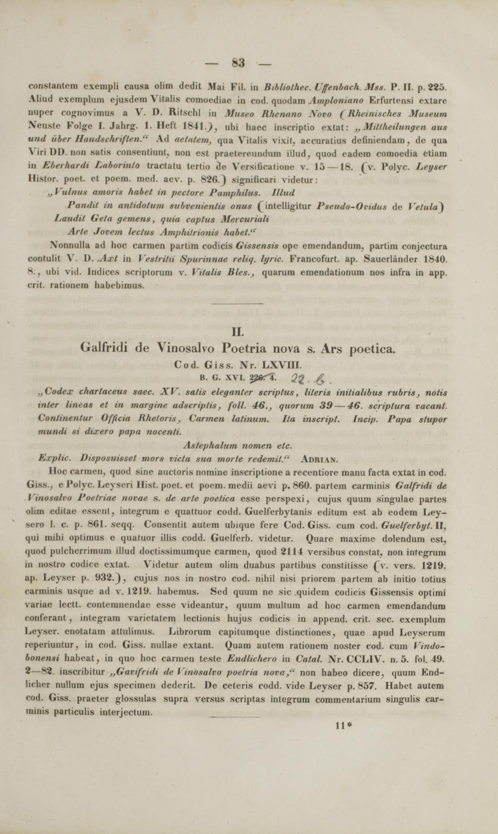 Commentarii critici in codices Bibliothecae academicae Gissensis Graecos et Latinos philologicos et medii aevi historicos ac geographicos : cum appendice critica variarum lectionum et quorundam carminum Latinorum medii aevi nunc primum e codicibus editorum / scripsit Frid. Guil. Otto