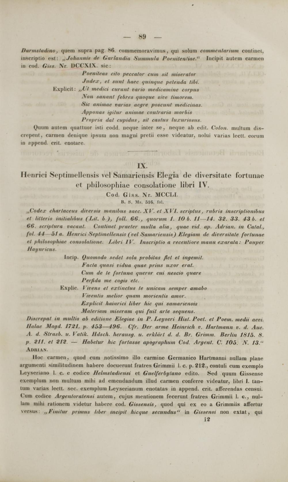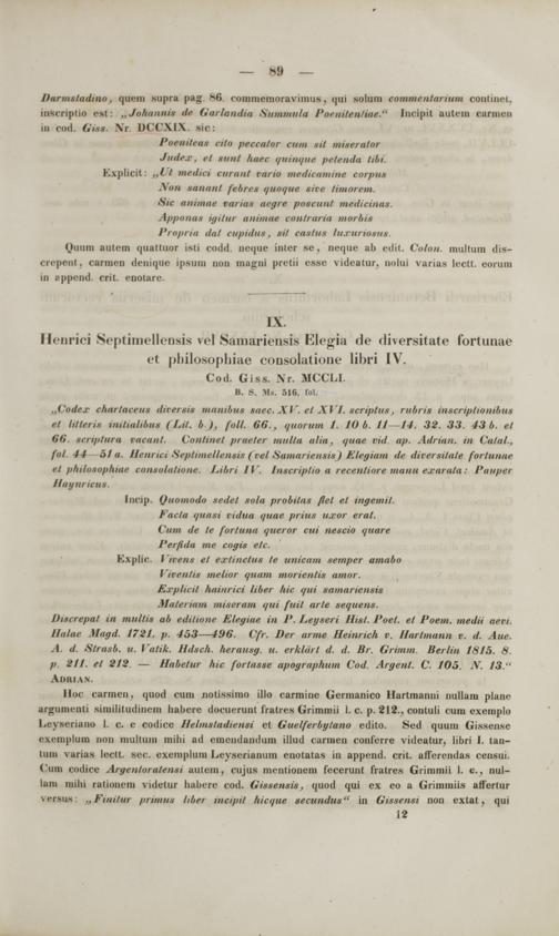 Commentarii critici in codices Bibliothecae academicae Gissensis Graecos et Latinos philologicos et medii aevi historicos ac geographicos : cum appendice critica variarum lectionum et quorundam carminum Latinorum medii aevi nunc primum e codicibus editorum / scripsit Frid. Guil. Otto