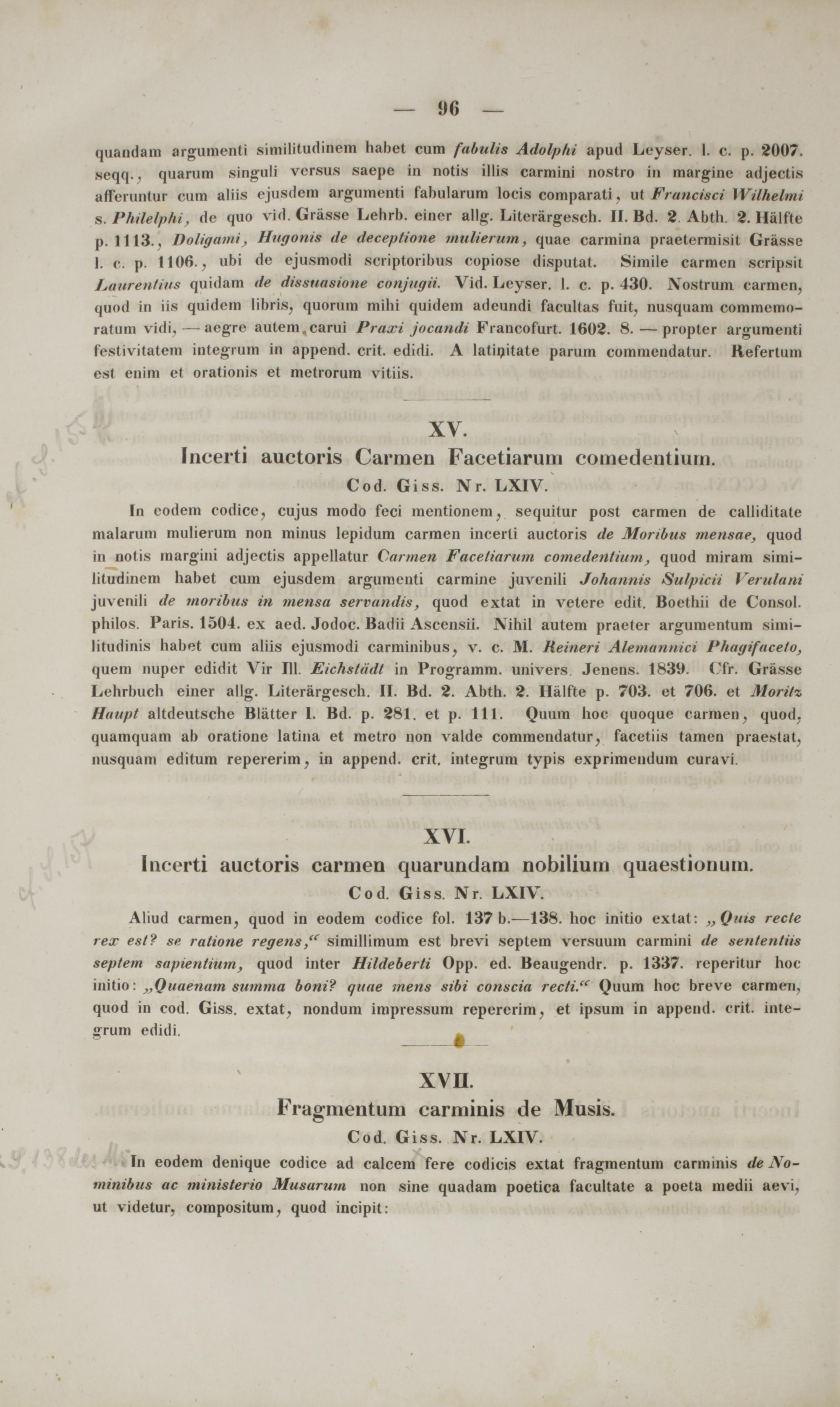 Commentarii critici in codices Bibliothecae academicae Gissensis Graecos et Latinos philologicos et medii aevi historicos ac geographicos : cum appendice critica variarum lectionum et quorundam carminum Latinorum medii aevi nunc primum e codicibus editorum / scripsit Frid. Guil. Otto