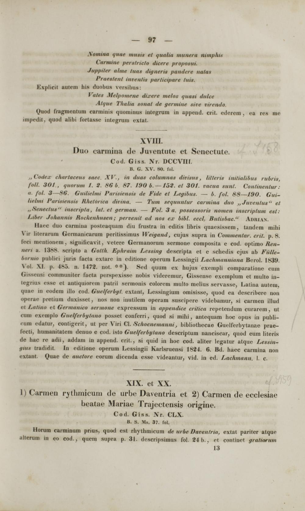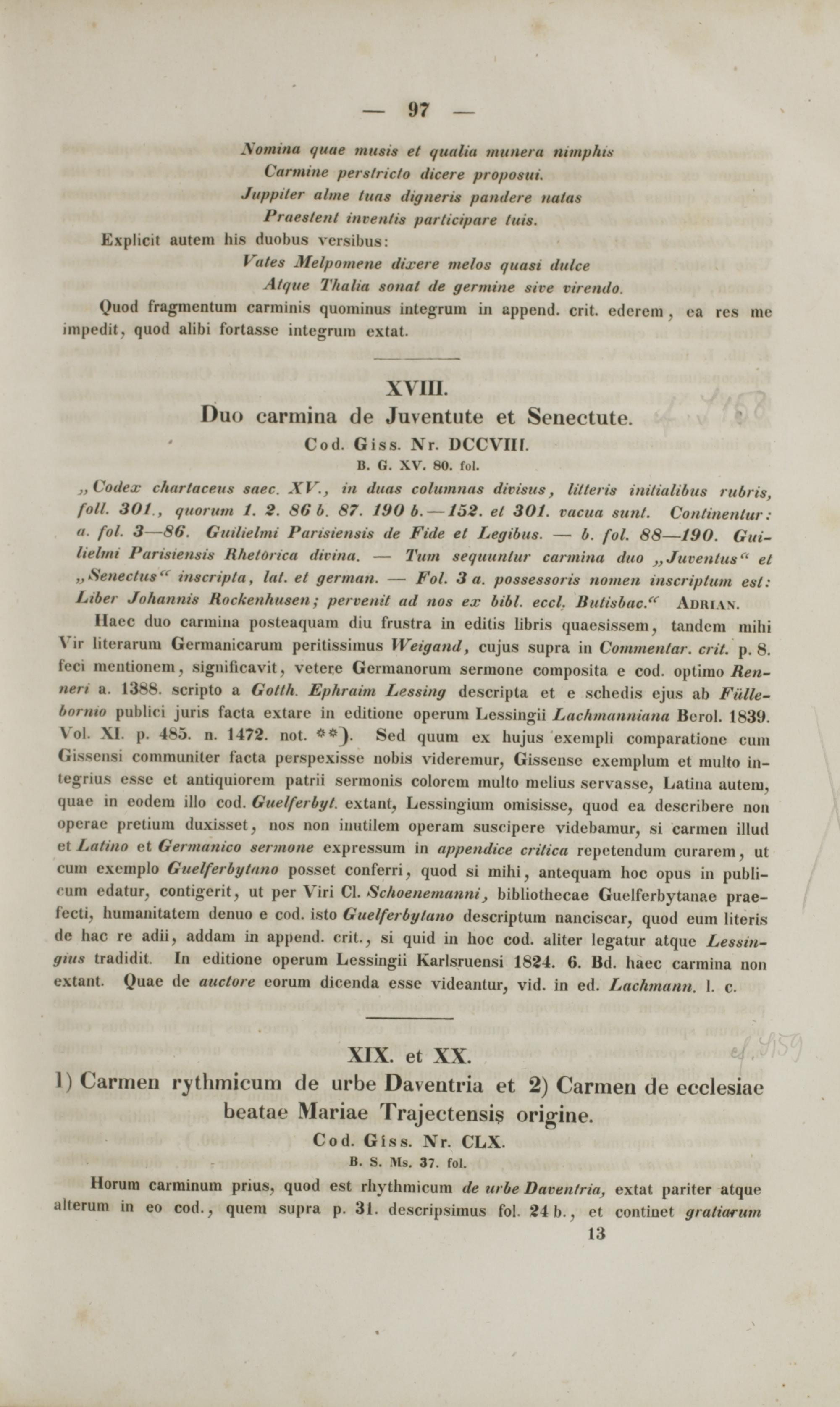 Commentarii critici in codices Bibliothecae academicae Gissensis Graecos et Latinos philologicos et medii aevi historicos ac geographicos : cum appendice critica variarum lectionum et quorundam carminum Latinorum medii aevi nunc primum e codicibus editorum / scripsit Frid. Guil. Otto
