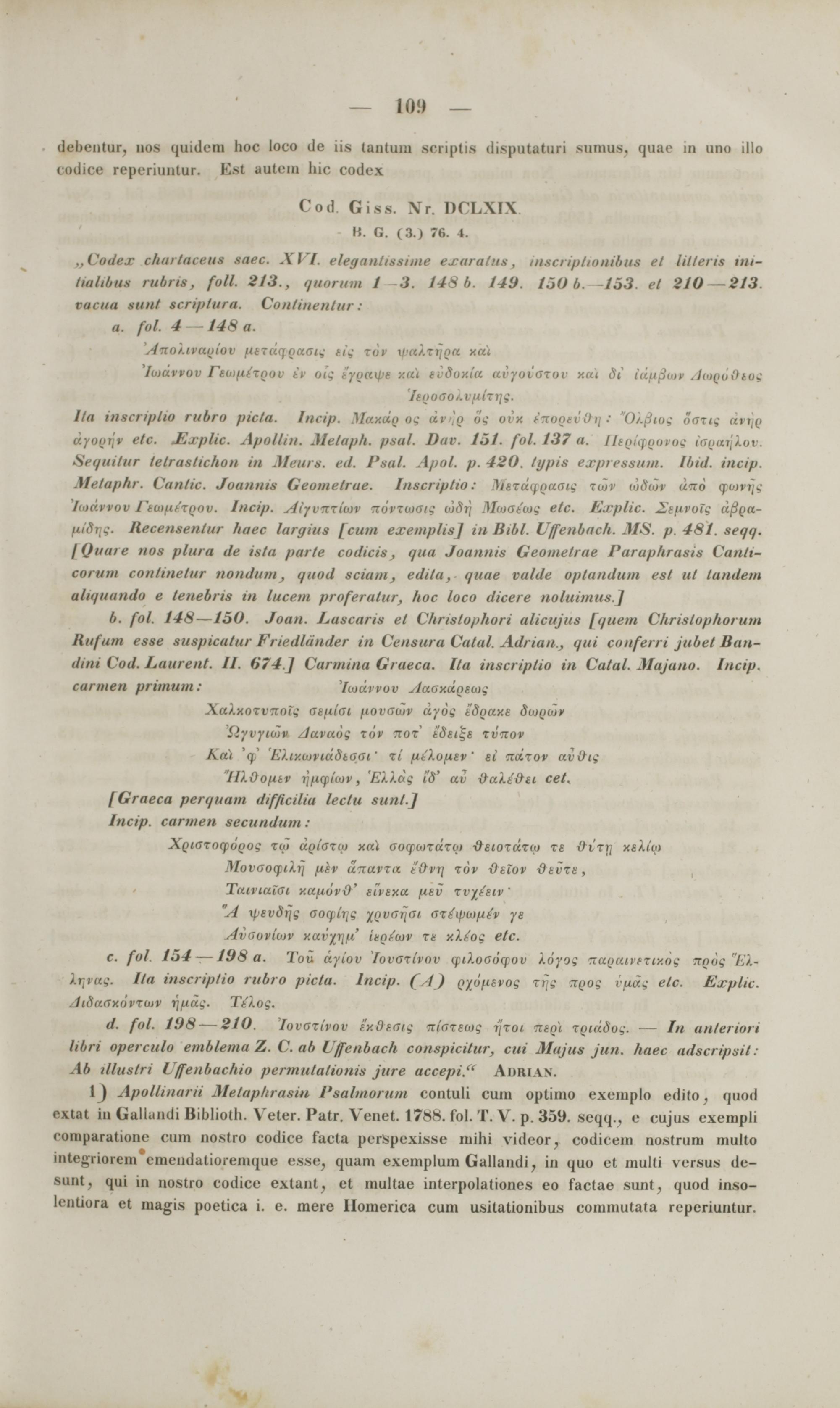 Commentarii critici in codices Bibliothecae academicae Gissensis Graecos et Latinos philologicos et medii aevi historicos ac geographicos : cum appendice critica variarum lectionum et quorundam carminum Latinorum medii aevi nunc primum e codicibus editorum / scripsit Frid. Guil. Otto
