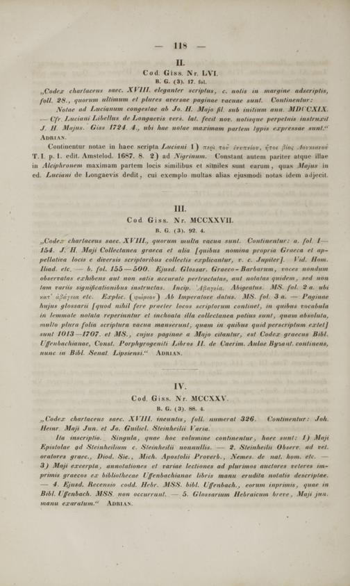 Commentarii critici in codices Bibliothecae academicae Gissensis Graecos et Latinos philologicos et medii aevi historicos ac geographicos : cum appendice critica variarum lectionum et quorundam carminum Latinorum medii aevi nunc primum e codicibus editorum / scripsit Frid. Guil. Otto