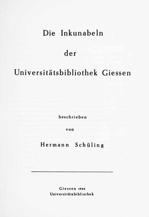 Die Inkunabeln der Universitätsbibliothek Gießen / H. Schüling