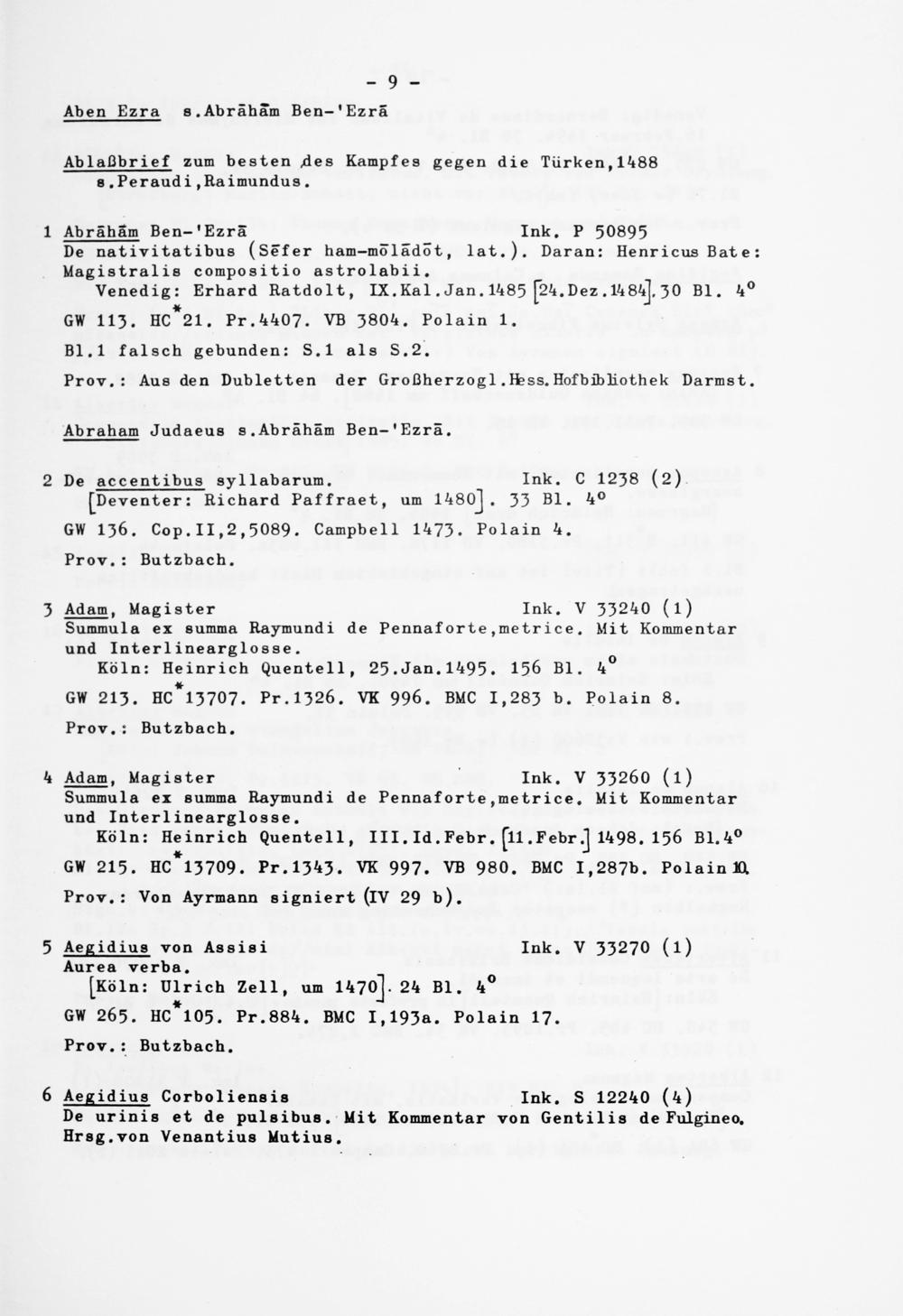Alphabetisches Verzeichnis der Gießener Inkunabeln