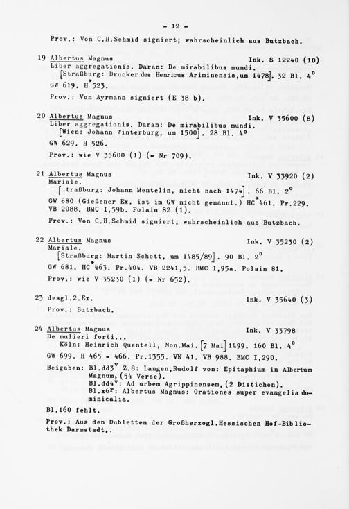 Alphabetisches Verzeichnis der Gießener Inkunabeln