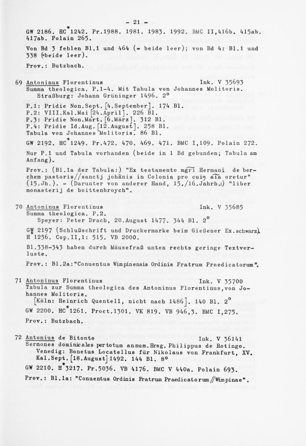 Alphabetisches Verzeichnis der Gießener Inkunabeln