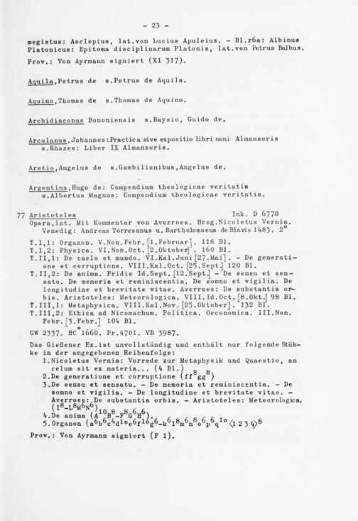 Alphabetisches Verzeichnis der Gießener Inkunabeln