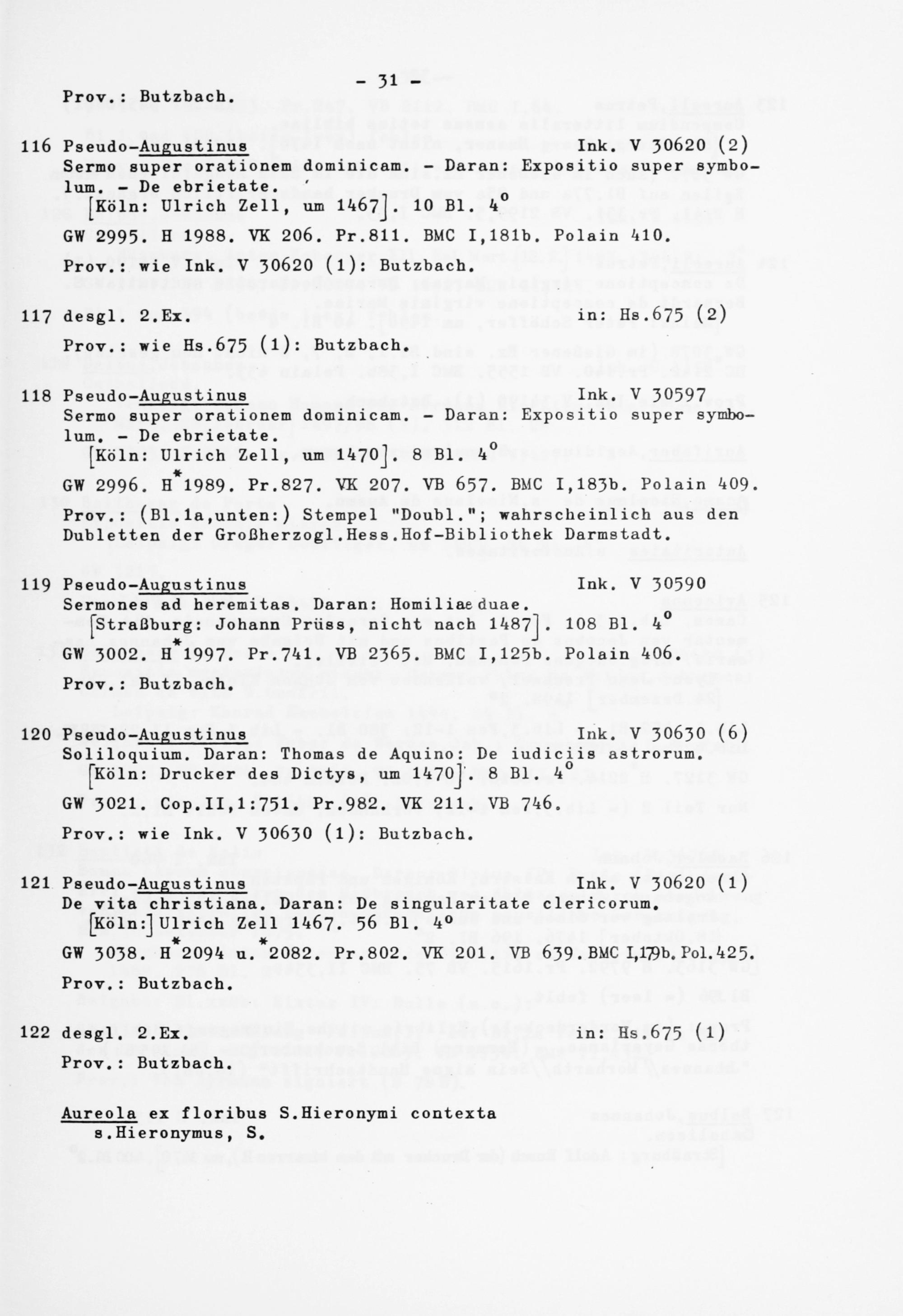 Alphabetisches Verzeichnis der Gießener Inkunabeln