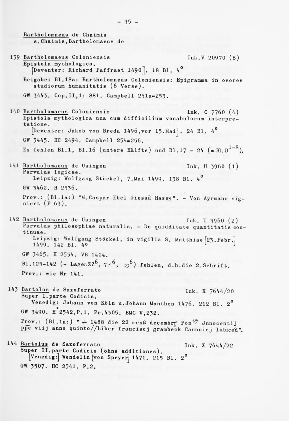 Alphabetisches Verzeichnis der Gießener Inkunabeln