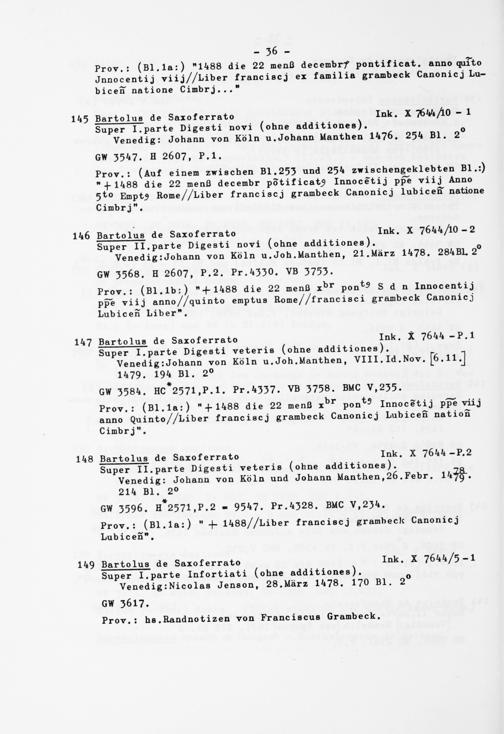 Alphabetisches Verzeichnis der Gießener Inkunabeln