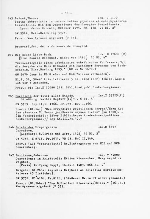 Alphabetisches Verzeichnis der Gießener Inkunabeln