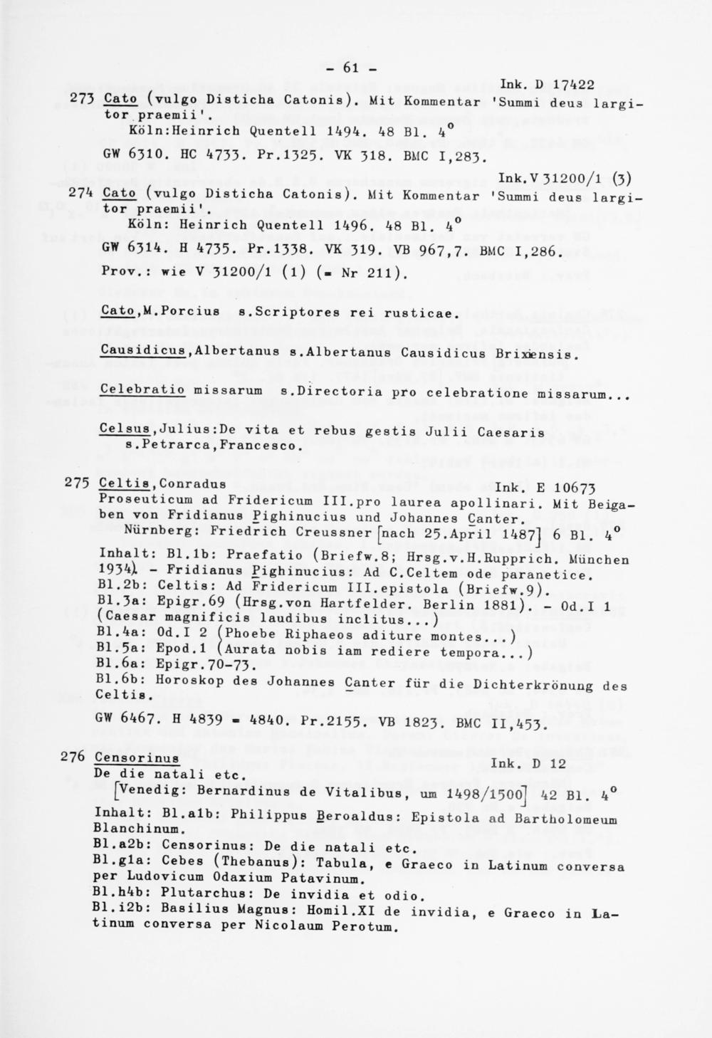 Alphabetisches Verzeichnis der Gießener Inkunabeln