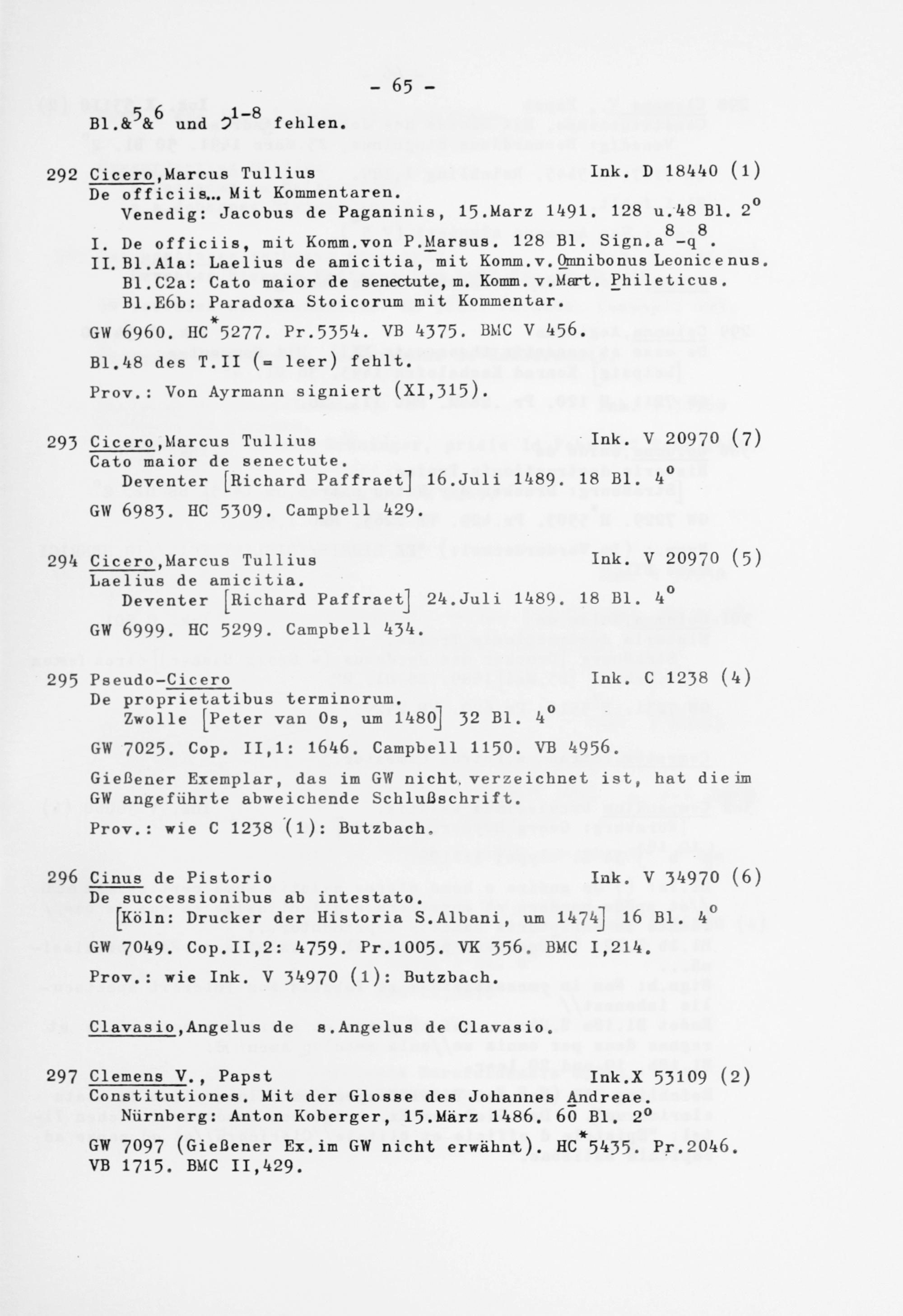 Alphabetisches Verzeichnis der Gießener Inkunabeln