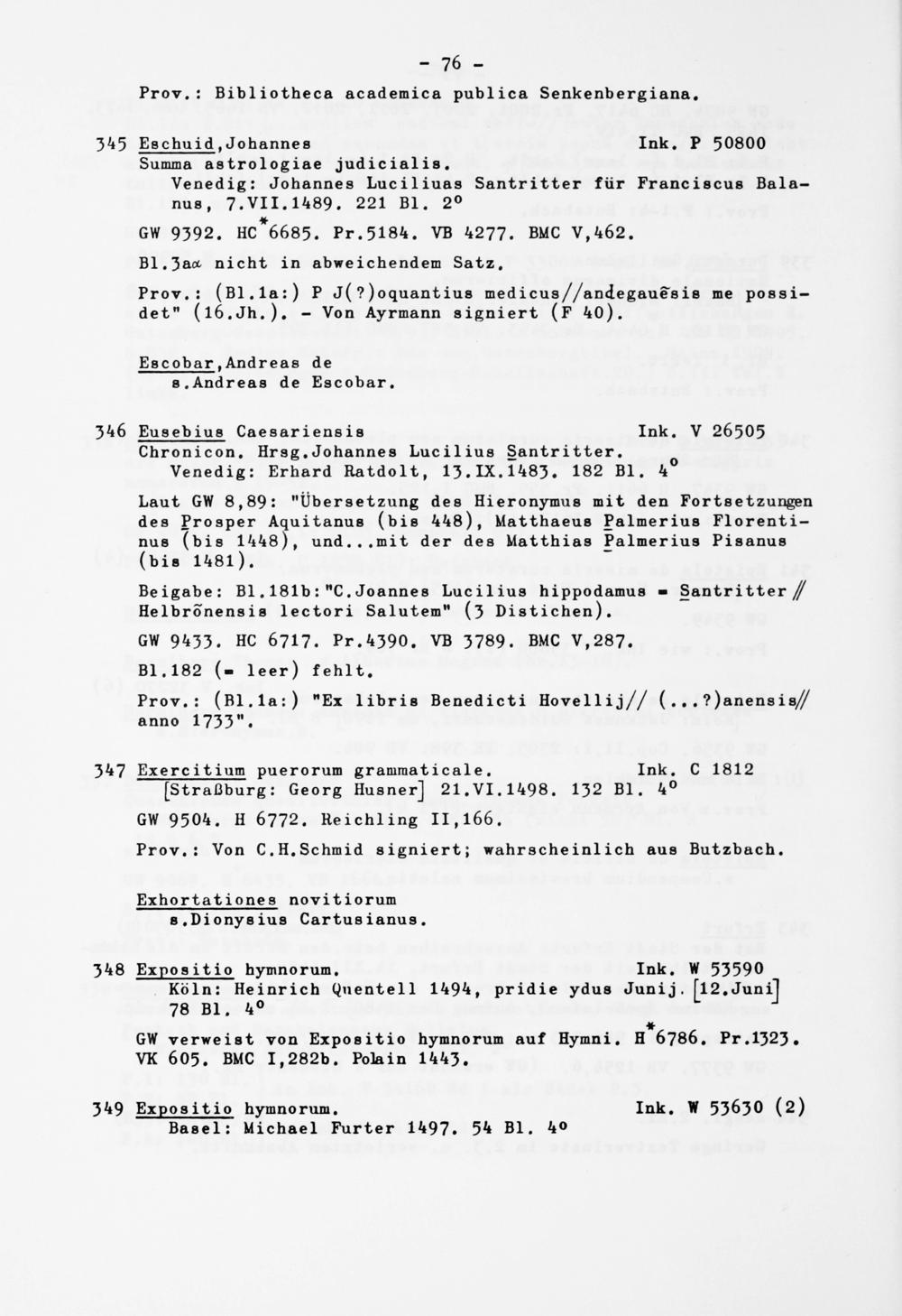 Alphabetisches Verzeichnis der Gießener Inkunabeln