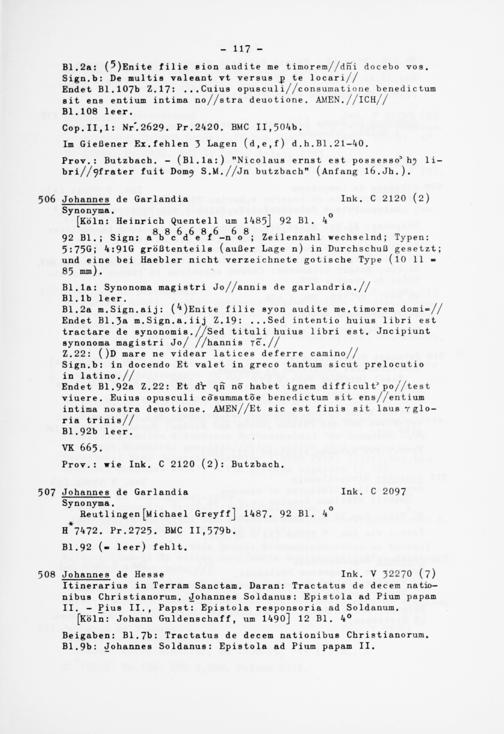 Alphabetisches Verzeichnis der Gießener Inkunabeln