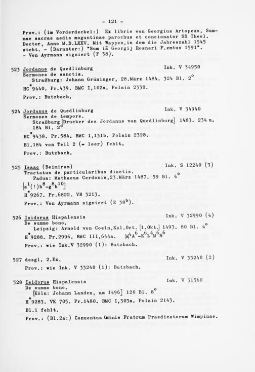 Alphabetisches Verzeichnis der Gießener Inkunabeln