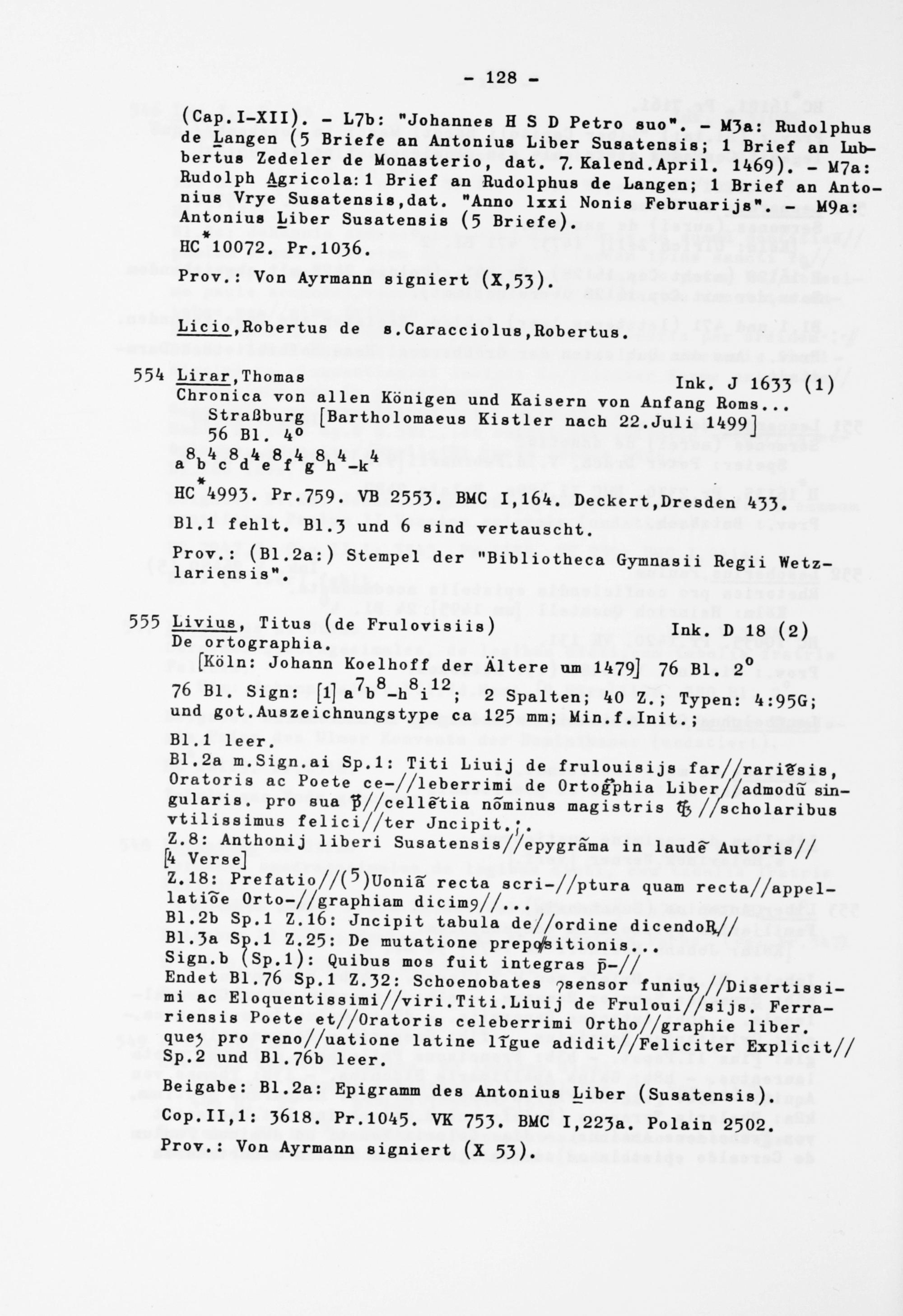 Alphabetisches Verzeichnis der Gießener Inkunabeln