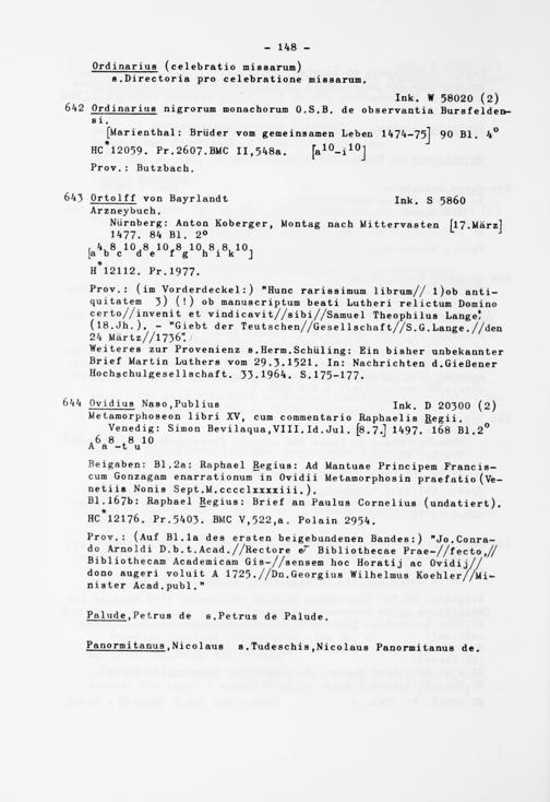 Alphabetisches Verzeichnis der Gießener Inkunabeln