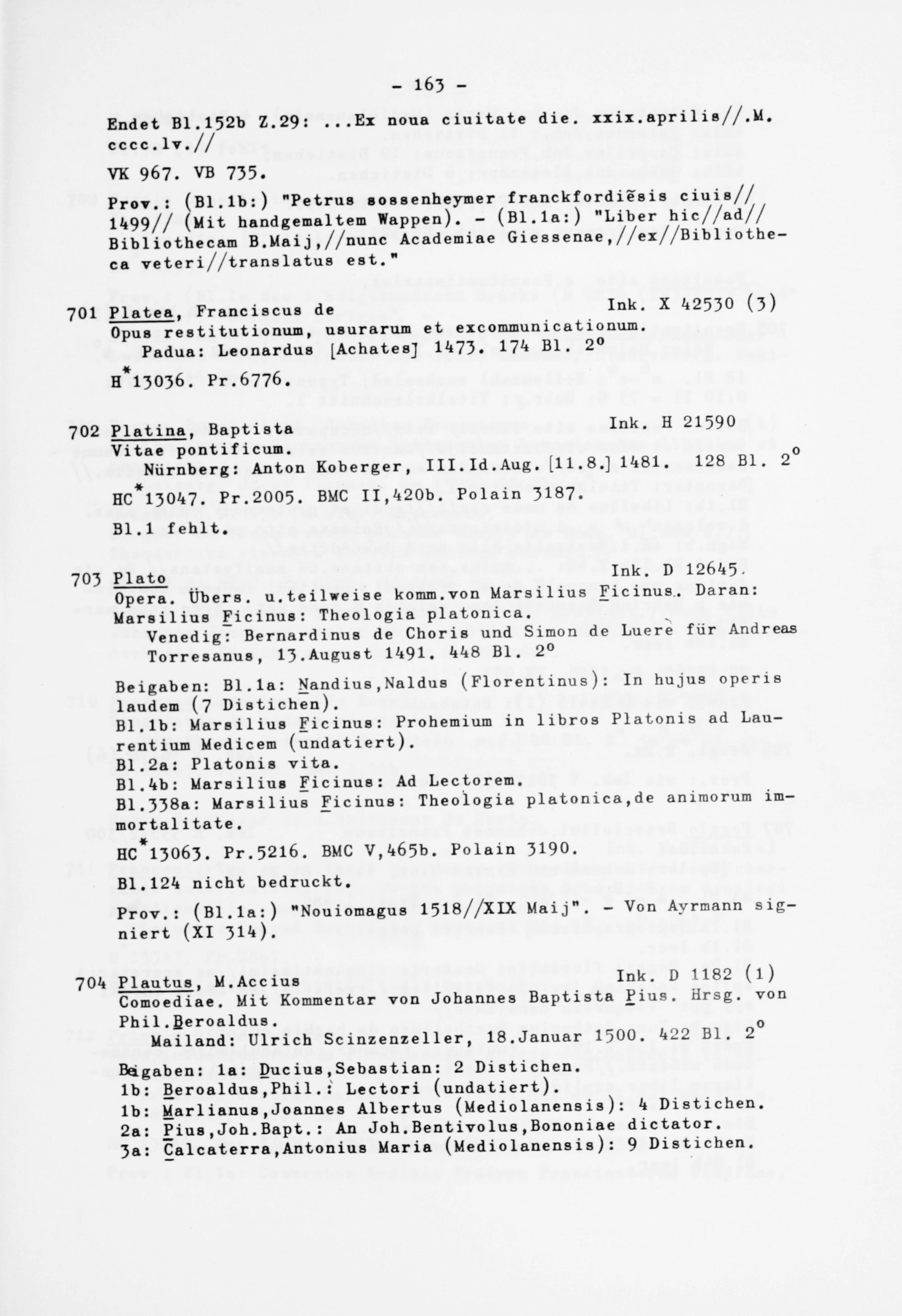 Alphabetisches Verzeichnis der Gießener Inkunabeln