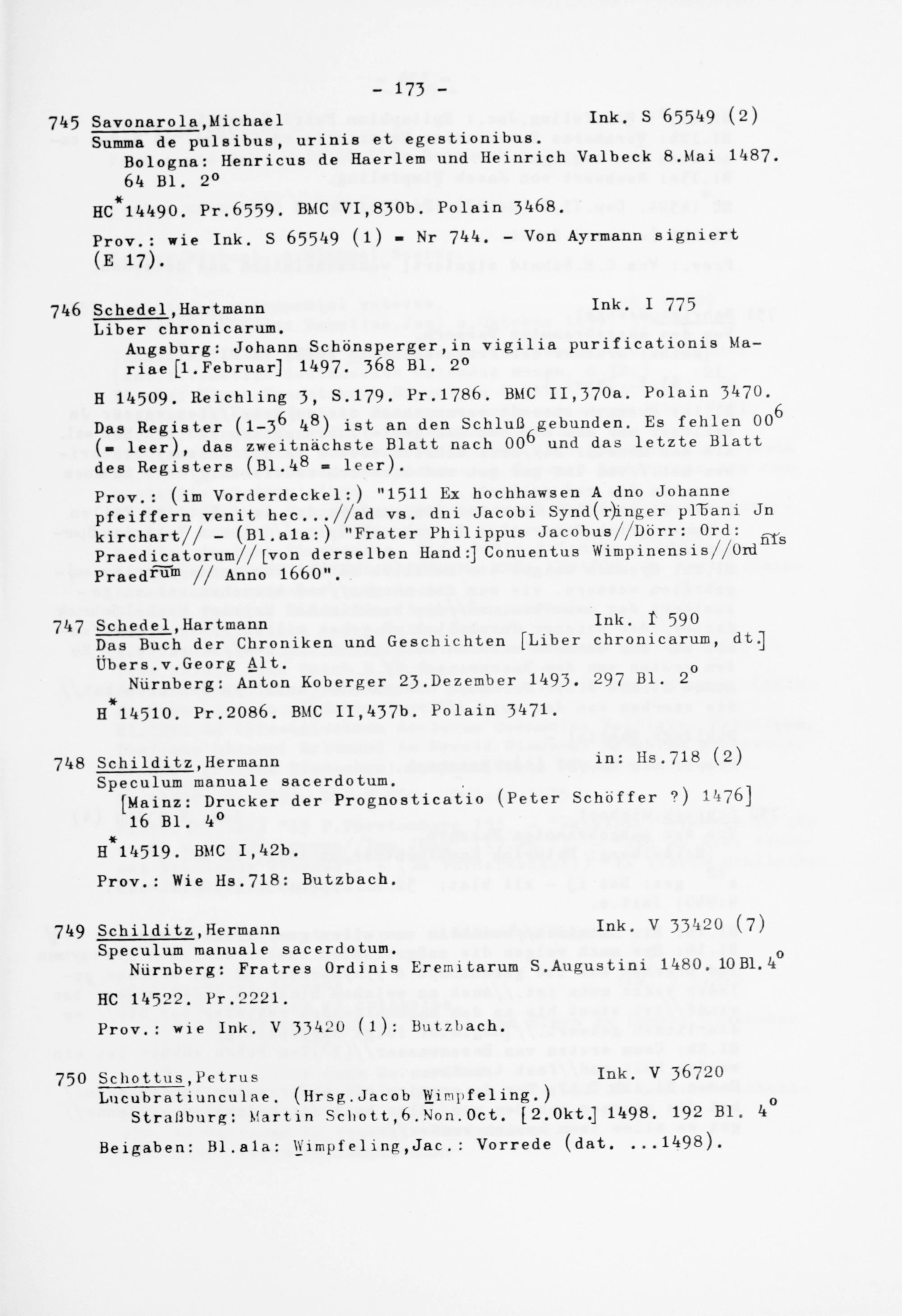 Alphabetisches Verzeichnis der Gießener Inkunabeln