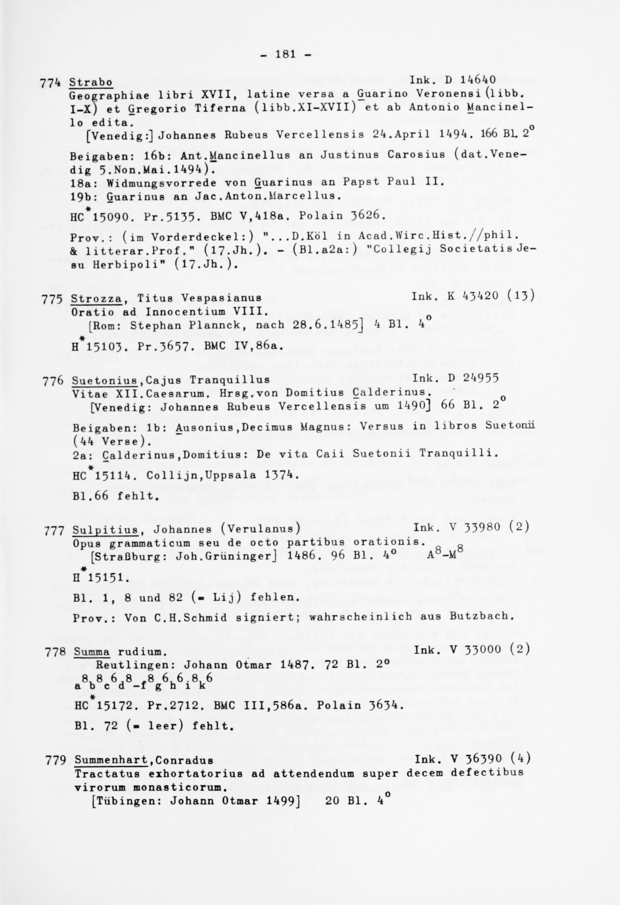 Alphabetisches Verzeichnis der Gießener Inkunabeln