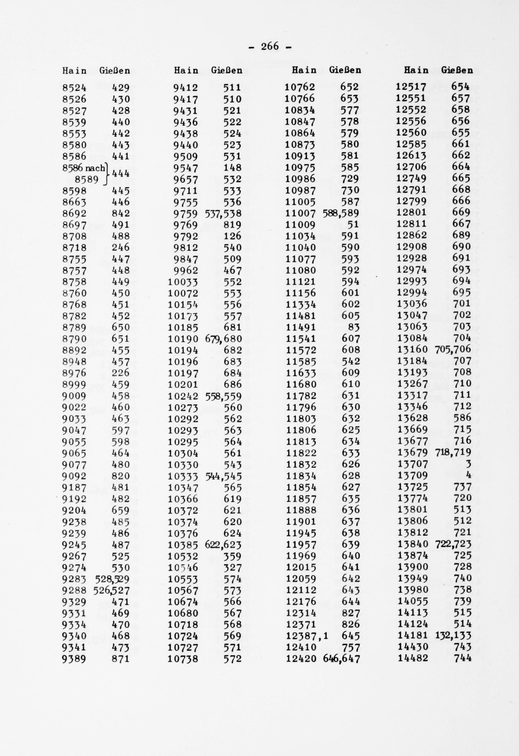 Verzeichnis der Hain-Nummern