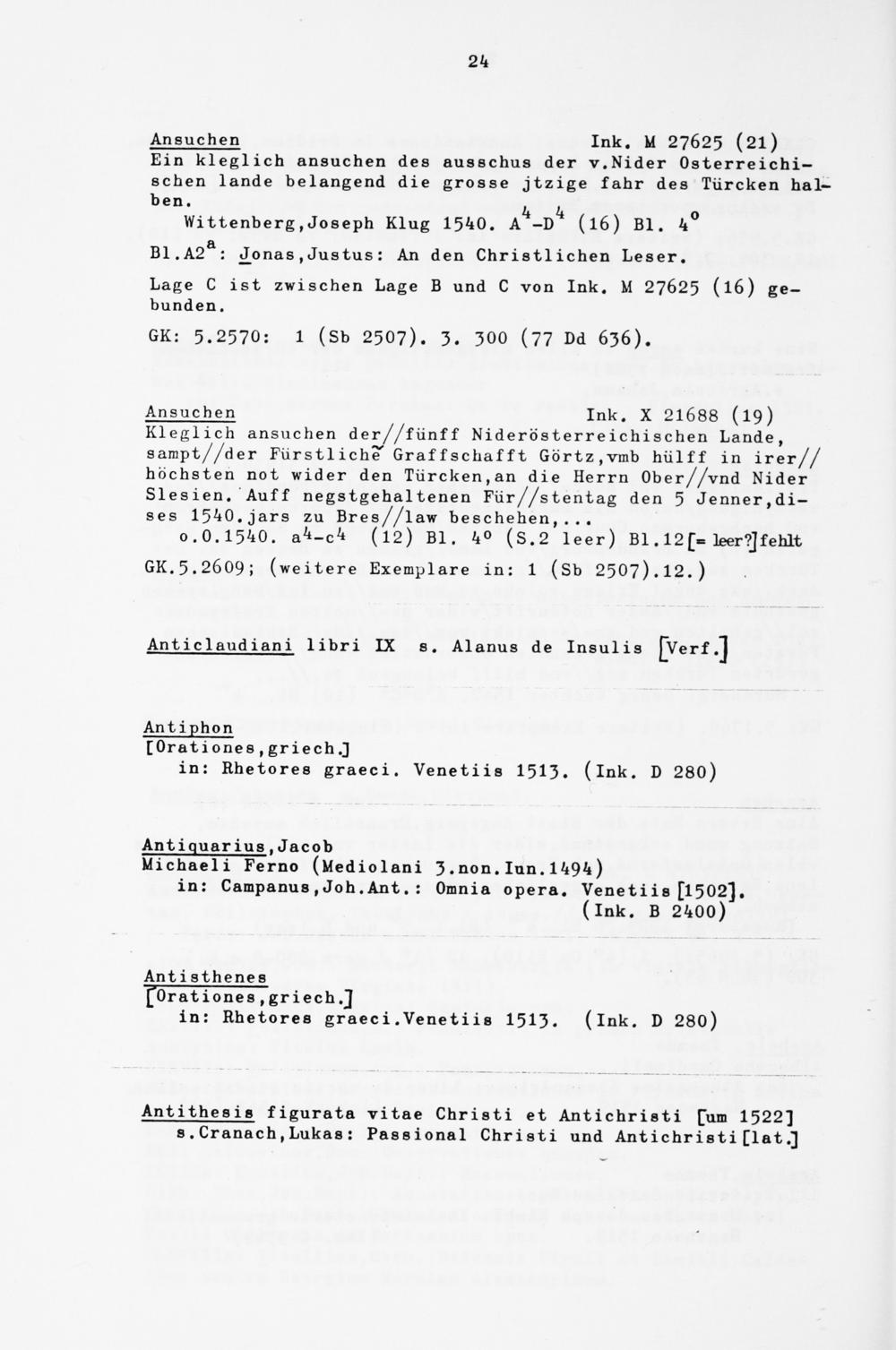 Alphabetisches Verzeichnis der Gießener Postinkunabeln