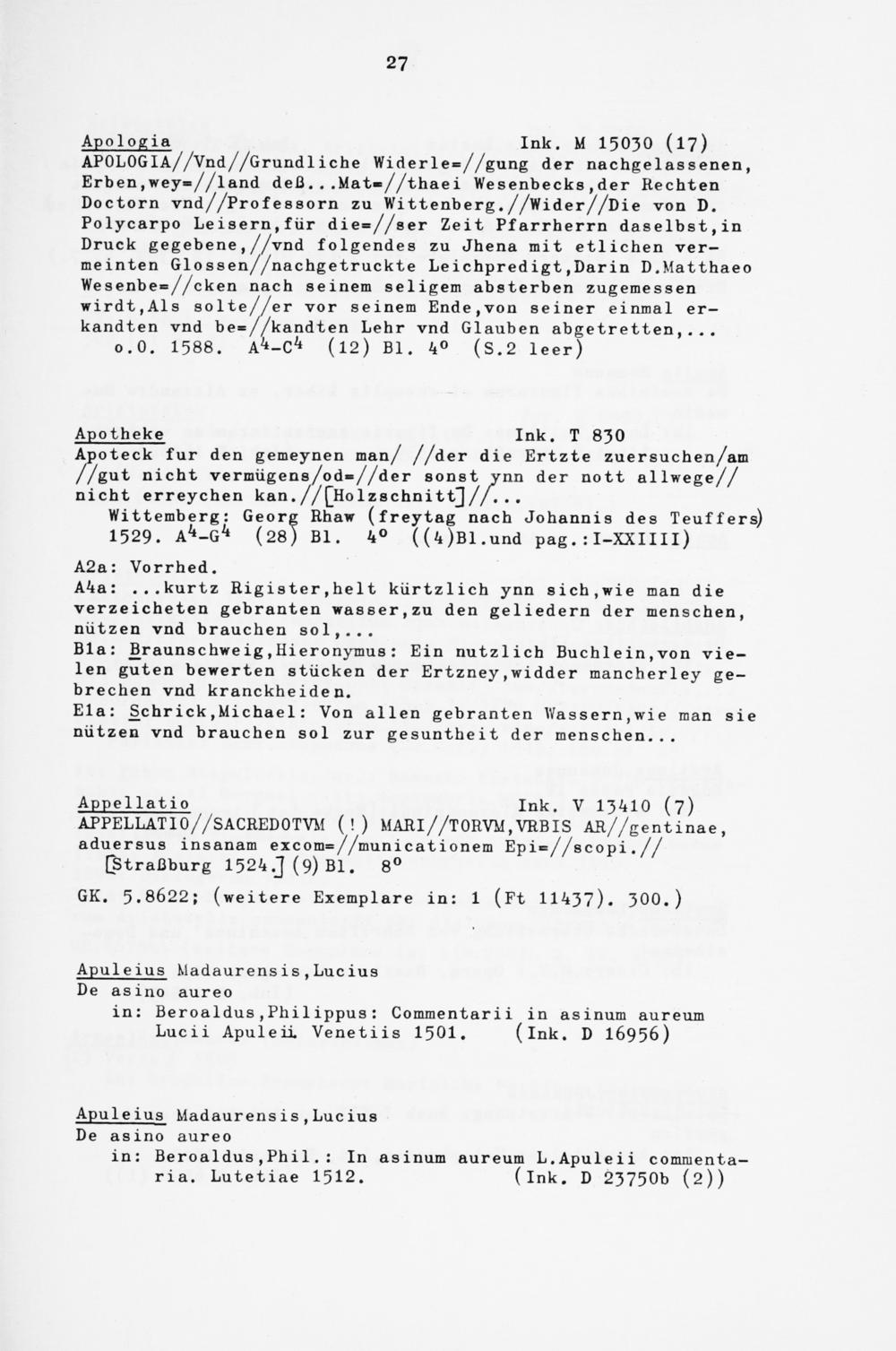Alphabetisches Verzeichnis der Gießener Postinkunabeln