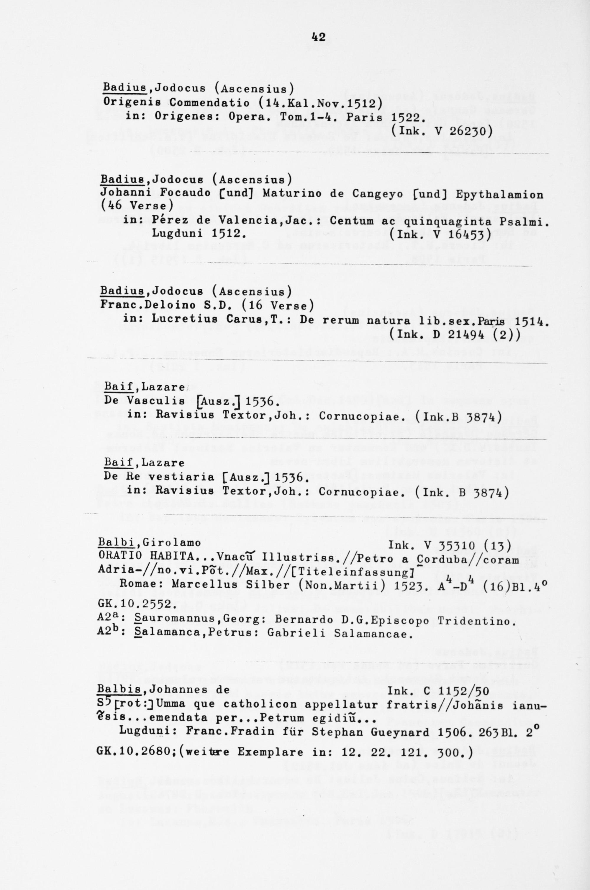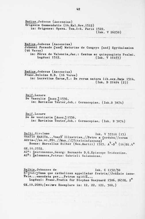 Alphabetisches Verzeichnis der Gießener Postinkunabeln