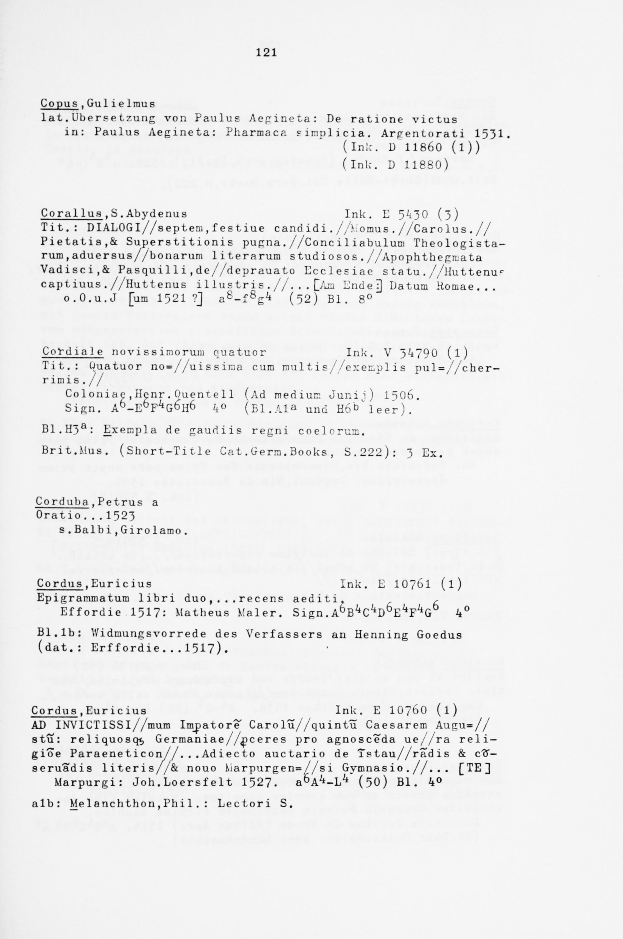 Alphabetisches Verzeichnis der Gießener Postinkunabeln