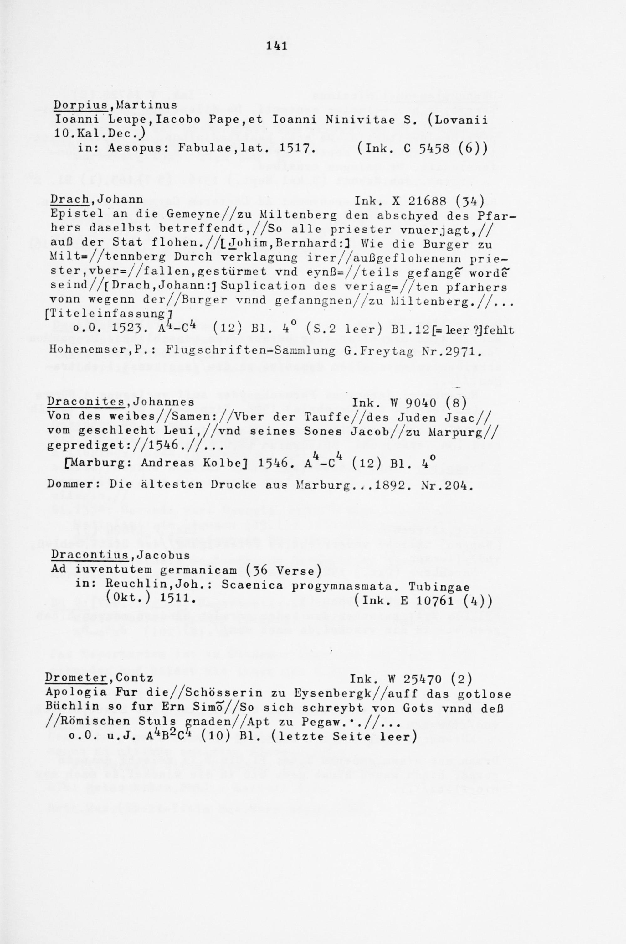 Alphabetisches Verzeichnis der Gießener Postinkunabeln