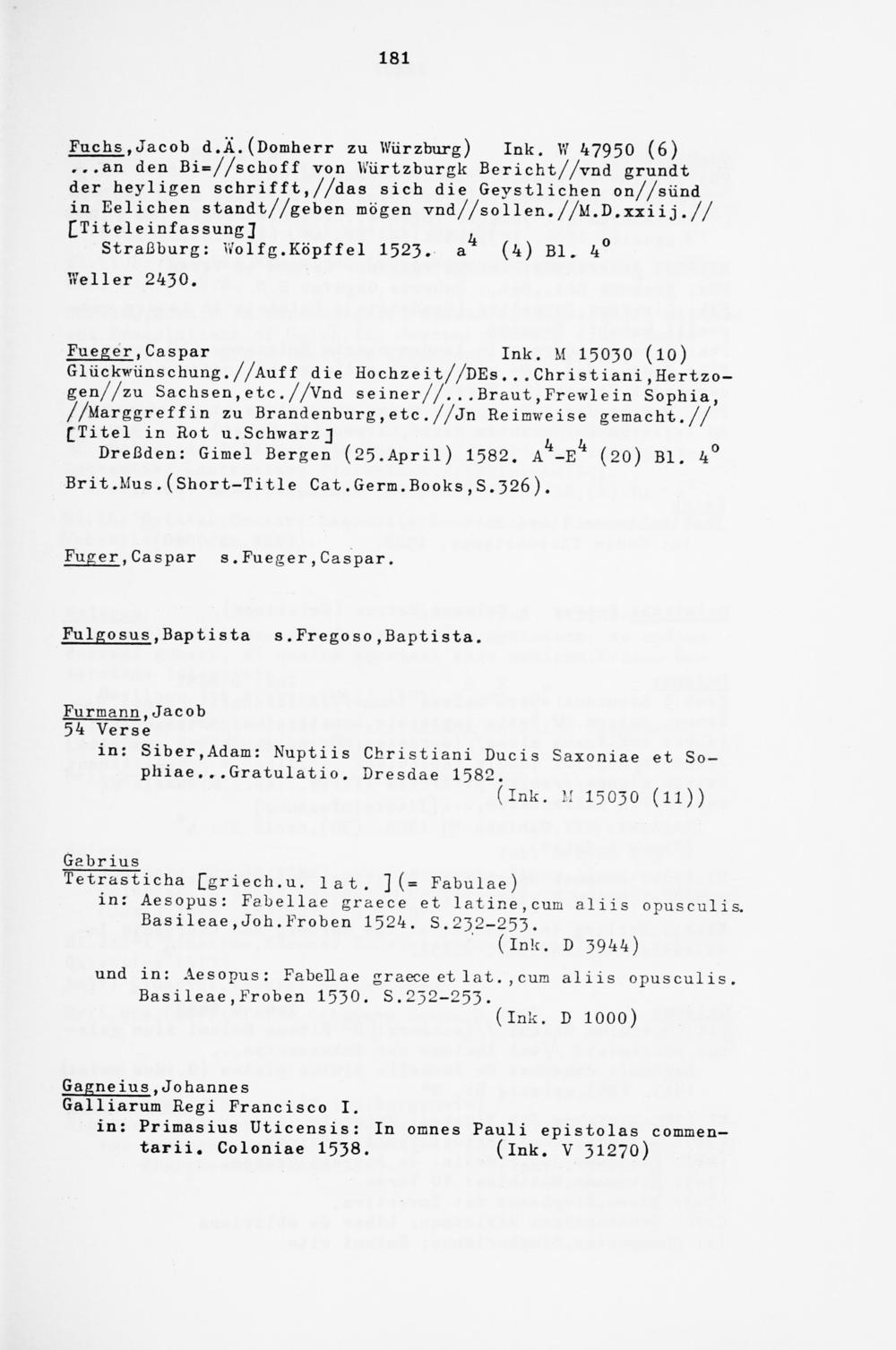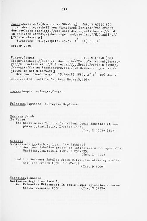 Alphabetisches Verzeichnis der Gießener Postinkunabeln