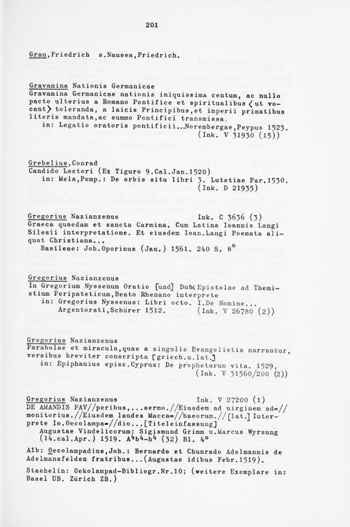 Alphabetisches Verzeichnis der Gießener Postinkunabeln