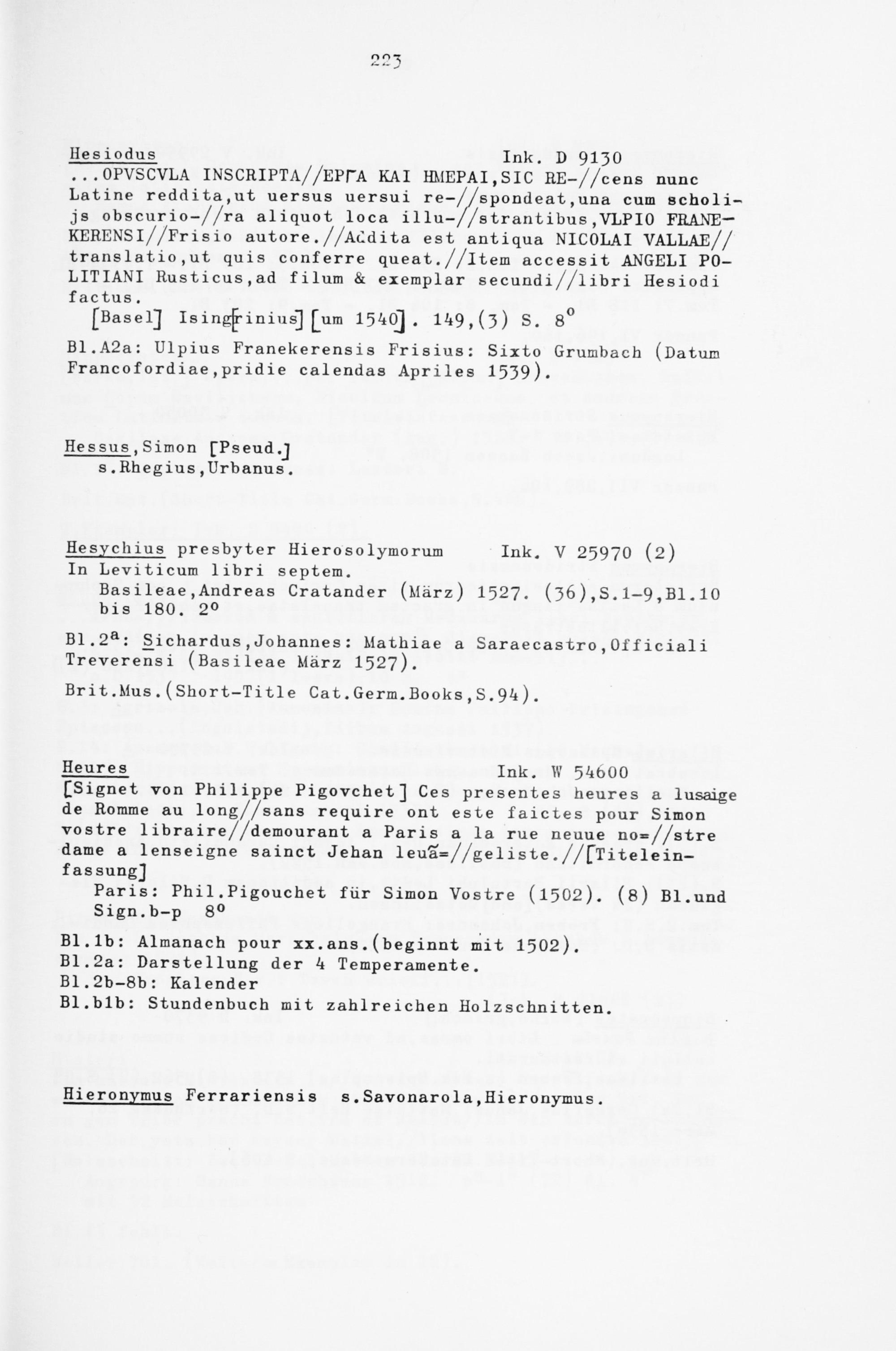 Alphabetisches Verzeichnis der Gießener Postinkunabeln